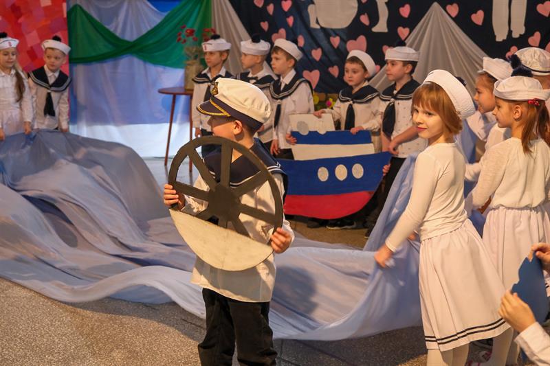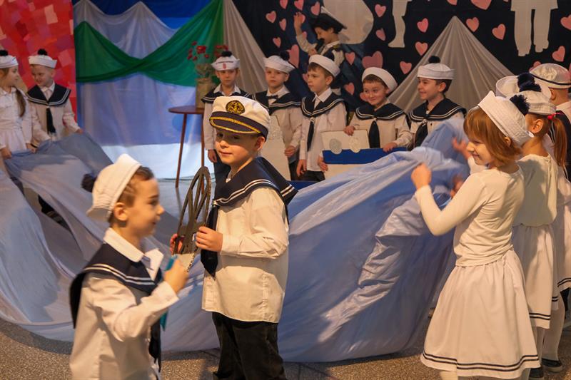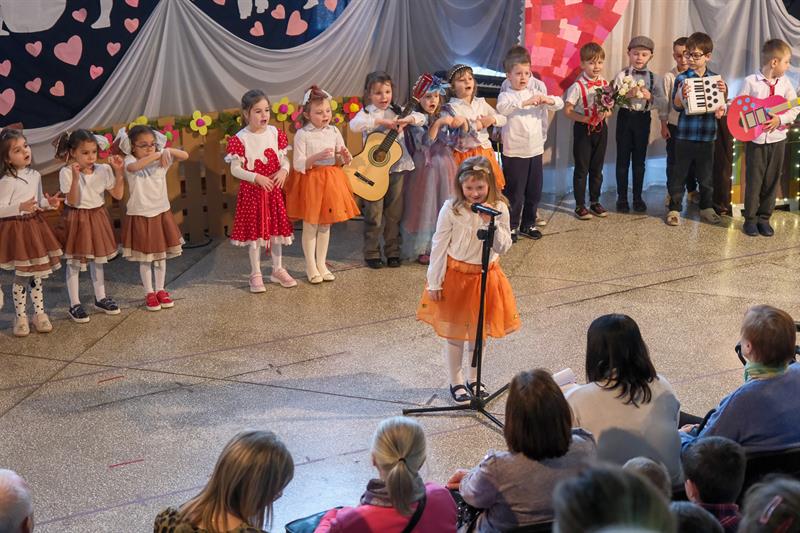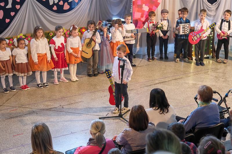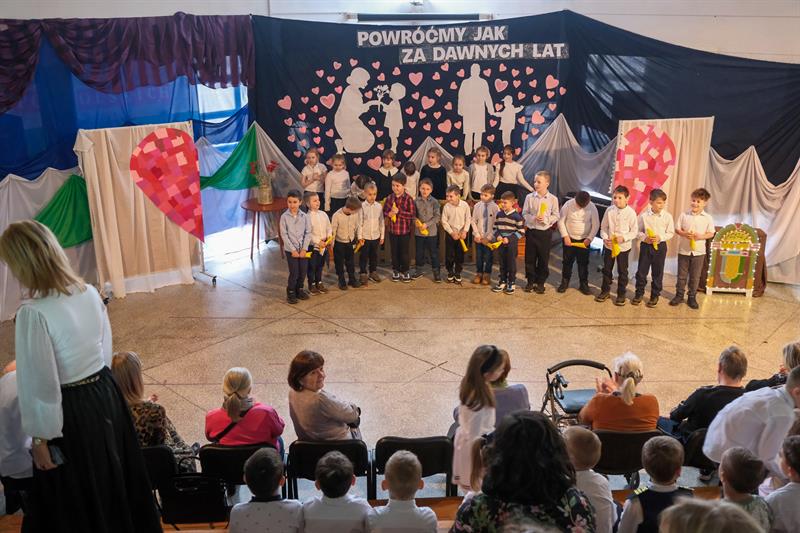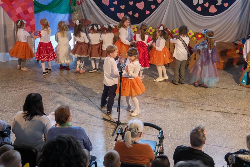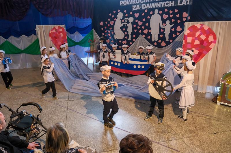 Nie zabrakło też humorystycznych akcentów – dzieci w przebraniu wykonały wesoły układ taneczny, a w tle rozbrzmiewały melodie z dawnych lat. Każda grupa włożyła serce w przygotowanie swojego występu.