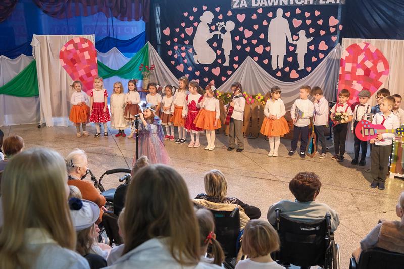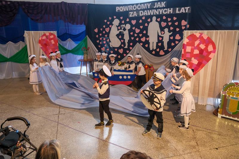 W trakcie występów dzieci zaprezentowały piosenki i tańce, które przenosiły słuchaczy w czasy dawnych zabaw i spotkań rodzinnych. Publiczność szczególnie wzruszyła piosenka „Powróćmy jak za dawnych lat”, także utwór „Parostatek” – w wykonaniu pierwszoklasistów wywołał burzę oklasków. Symbolicznym punktem programu był taniec przy „Marszu Mendelssohna”, opowiadający historię miłości i wspólnych chwil babć i dziadków.