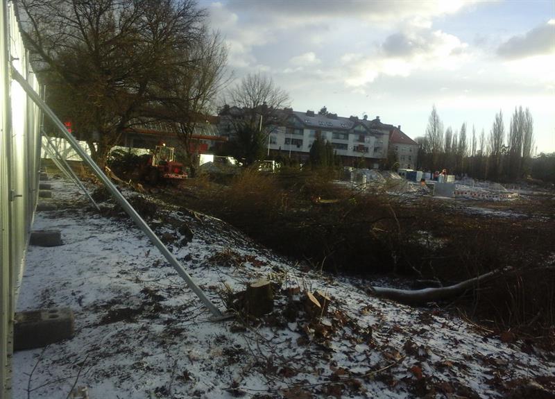 Ten etap - jak podaje Centrum Informacji Miasta - to porządkowanie zieleni. Co w praktyce oznacza jej usuwanie. Nasz Czytelnik na placu budowy Węzła Łękno był w poniedziałek. Jedna rzecz przykuła jego uwagę: pilarze tnący nawet drzewa rosnące tam... w donicach.