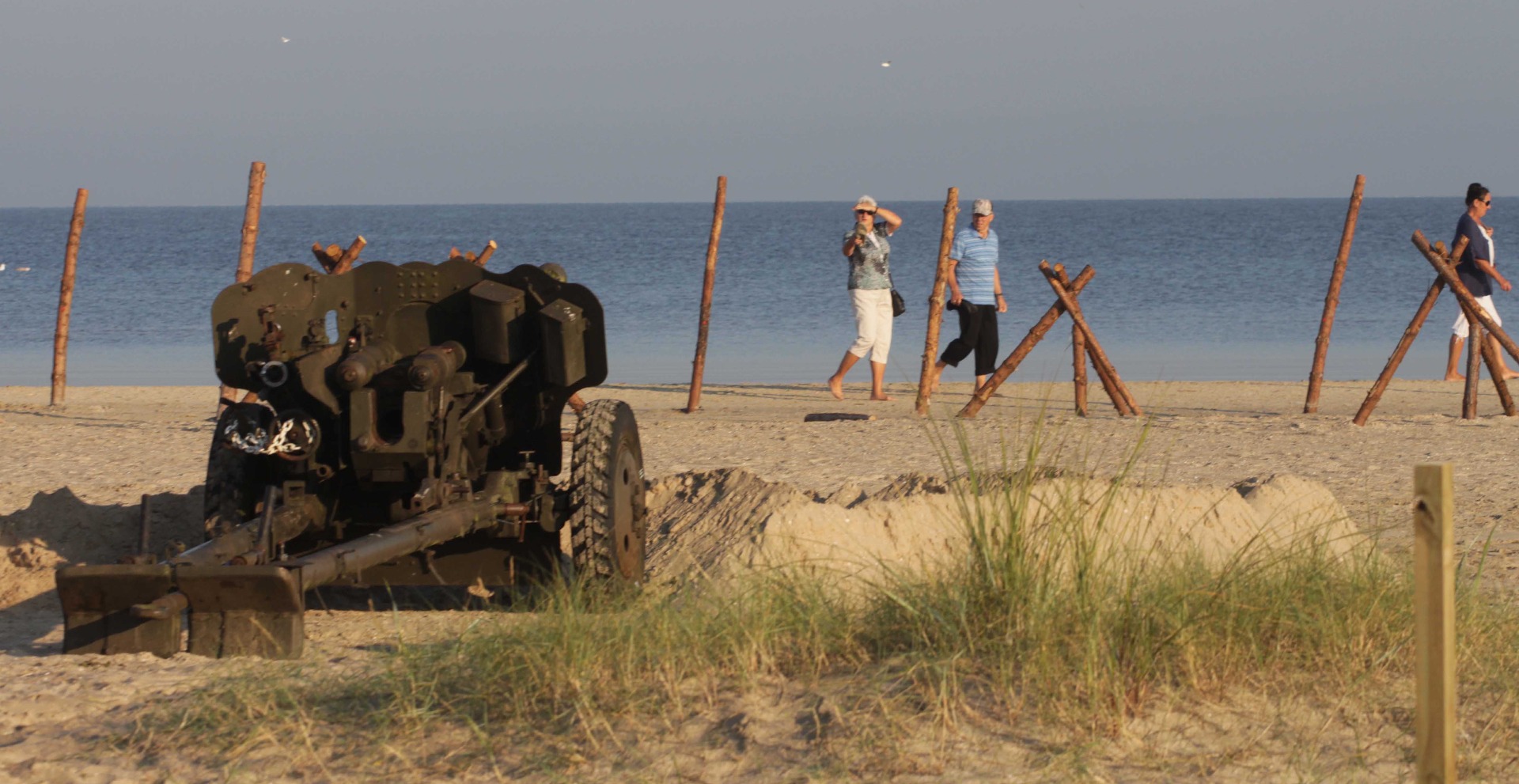 Plaża przy „Wiatraku” już gotowa do sobotniej inscenizacji. W Świnoujściu pasjonaci historii przedstawią alternatywną historię, w której plan Churchilla wyrwania Polski z rąk Stalina zostałby jednak wcielony w życie. Fot. Bartosz TURLEJSKI