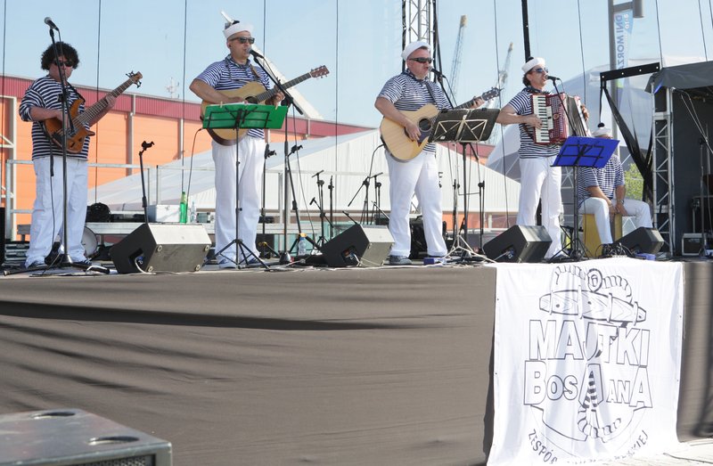 Tuż obok Festiwal Orkiestr Dętych i pokazy rzeźb z piasku, scena szantowo – folkowa. Wszystkie ogródki piwne szczelnie wypełnione. Kto nie lubi bursztynowego trunku może skorzystać z wody na stoisku szczecińskiego ZWiK. Jak zwykle kolejki ustawiają się do jednego z największych żaglowców świata – rosyjskiego Siedowa (który zacumował u nabrzeża Starówka) na którego pokładzie w sobotę wieczorem ma się odbyć bankiet dla lokalnych VIP-ów.