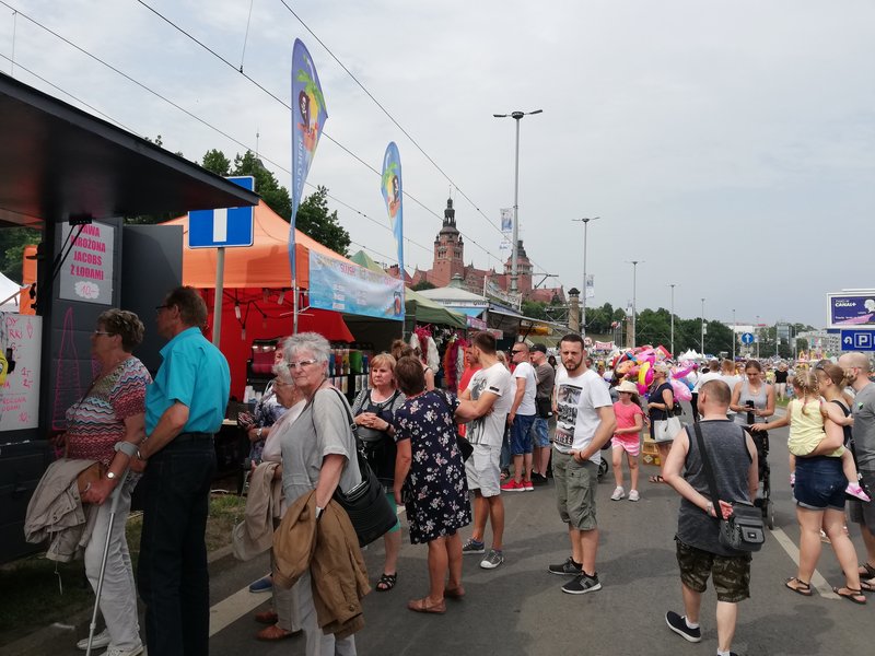 Na jarmarku i straganach po obu stronach Odry można kupić pamiątki i oczywiście smakołyki - lody, lemoniady, pączki, frytki, hot dogi, zapiekanki, szaszłyki. Mnóstwo amatorów ma zabawa w wesołym miasteczku, kolejka ustawia się po bilety na Wheel of Szczecin - największy diabelski młyn w Polsce, który stoi na Łasztowni (wejście dla osoby dorosłej 30 zł). Ludzie się przechadzają, zwiedzają żaglowce, odpoczywają w tawernach, albo na trawce, szukają ochłody w upale.