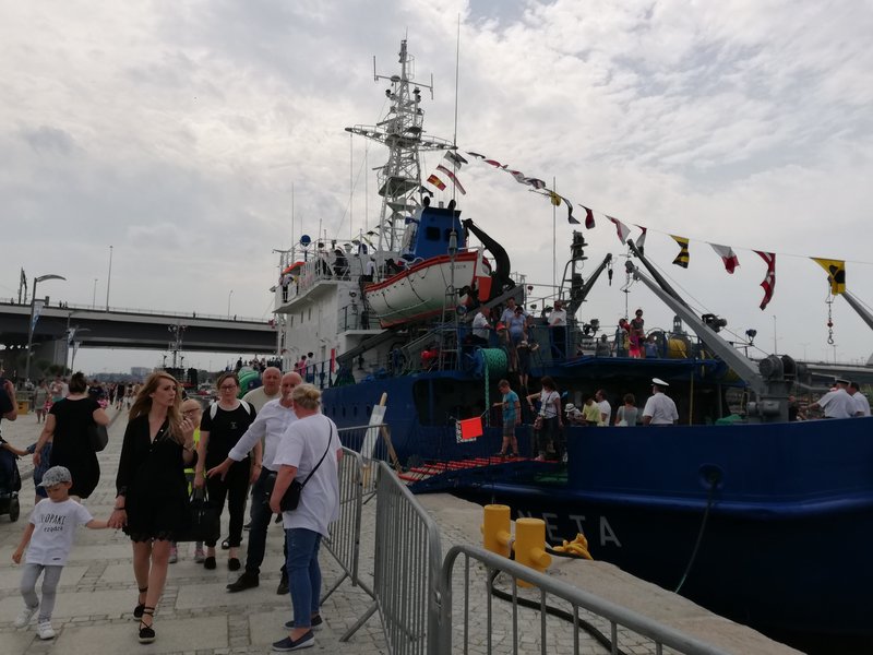 - Z zewnątrz wygląda imponująco, teraz zobaczymy, jak jest w środku - mówiła para seniorów z Kołobrzegu, która na pokład wchodziła pierwsza. - A sama impreza fajna, jest co oglądać.