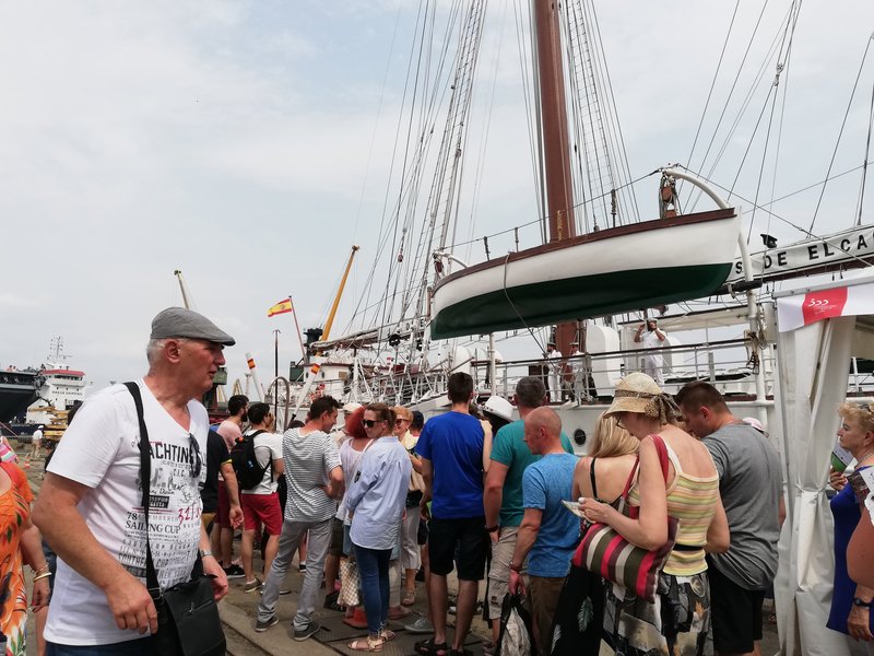 W męczącym upale na zwiedzanie hiszpańskiego żaglowca, stojącego przy nabrzeżu Bułgarskim na końcu Łasztowni, czekała długa kolejka chętnych.