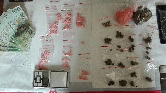 Pyrzyccy policjanci z wydziału kryminalnego uzyskali informację iż w jednym z mieszkań na terenie Pyrzyc mogą znajdować się znaczne ilości środków odurzających. W trakcie przeszukania mieszkania policjanci znaleźli woreczki strunowe z zawartością różowego proszku oraz suszu roślinnego. Zabezpieczyli także wagę elektroniczną i 1000 zł w gotówce.
