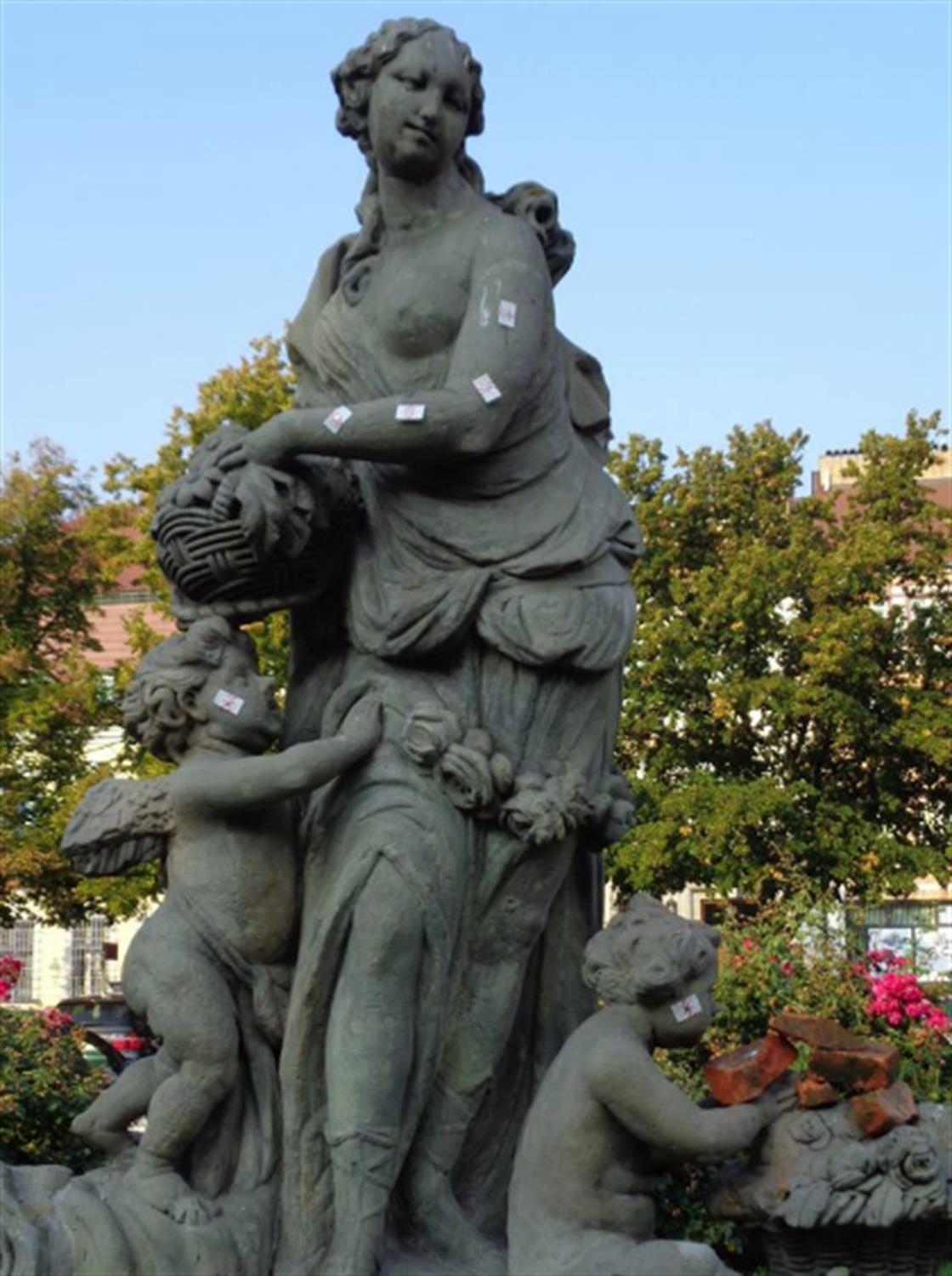 Barokowa rzeźba z XVIII wieku, która od blisko trzech dekad ozdabia pl. Orła Białego w Szczecinie, tej nocy została naruszona. Posąg bogini został oblepiony plastrami z metalowymi zatrzaskami, a jeden z towarzyszących jej kupidynów, oprócz kwiatów, miał w koszu stos cegieł.