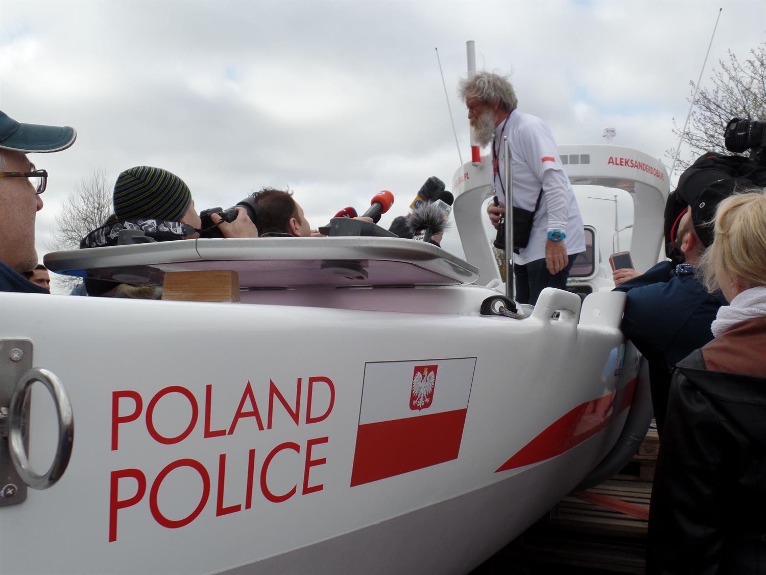 Ale na pytania odpowiadał chętnie, demonstrował też właściwości odnowionej łodzi. Kajak wciąż nazywa się „Olo” - jednak został gruntownie przebudowany. Znów ma pałąk stabilizujący (który podczas poprzedniej wyprawy został odłamany), w oczy rzucają się też dwie duże dodatkowe anteny.