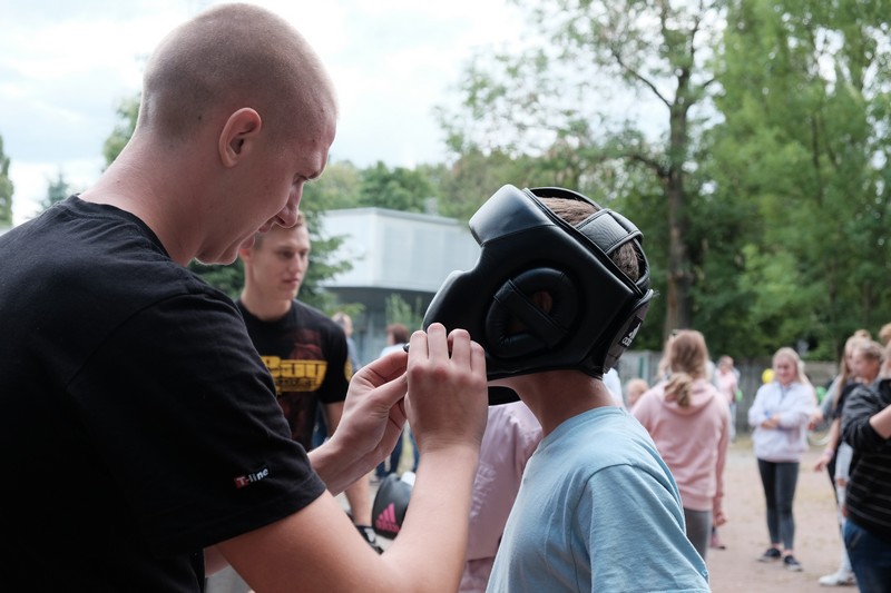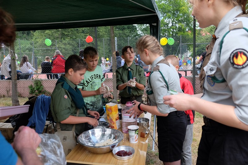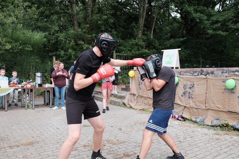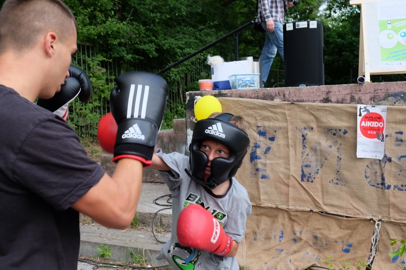 Festyn na placu zabaw przy ul. Zamkniętej był pełen ciekawych propozycji - od warsztatów rękodzieła, przez pokazy harcerskie i wyczyny sportowe klubu bokserskiego Spartakus i Fundacji Anioły Sportu, prezentację zabytkowego junaka z Muzeum Techniki, po poczęstunek - smakołyki z grilla i pajdę chleba ze smalcem. Na terenie firmy Alfa Terminal czekały atrakcje na miłośników kolei, a także wystawa prac artysty Tadeusza Szklarskiego. Jak zawsze zadbano też o najmłodszych, dla których przyszykowano sporo niespodzianek.
