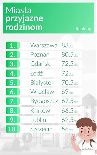 - Miasto przyjazne dzieciom, czyli dokładnie jakie? Nasz ranking to próba odpowiedzi na to pytanie - tłumaczą autorzy zestawienia. - Jego podstawą jest analiza możliwości, które dana miejscowość oferuje rodzinom: zarówno tym, które dopiero planują dziecko, jak i tym, które już je mają. To, co dobre dla młodych, w dużej mierze będzie też korzystne dla rodziców, a w dalszej perspektywie dla całego społeczeństwa.