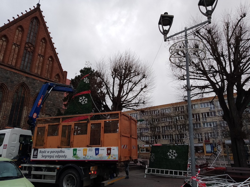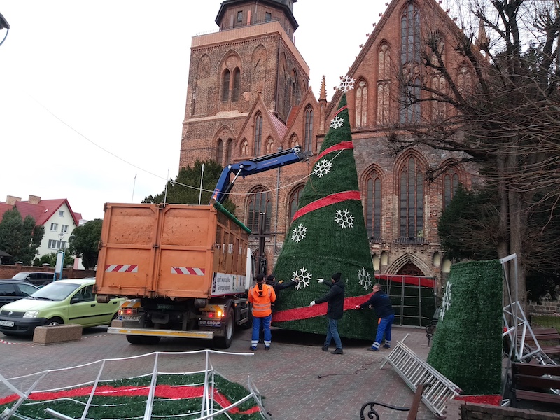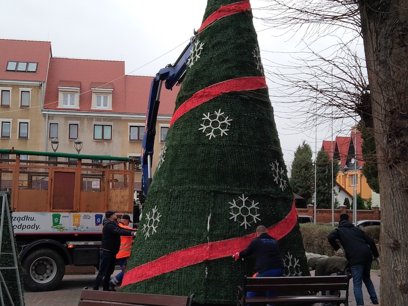 Wichura daje się we znaki mieszkańcom wielu miejscowości. W większości przypadków interweniuje straż pożarna, ale sporo pracy mają też służby komunalne. Na zdjęciach uchwyciliśmy pracowników gryfińskiego PUK w chwili, gdy dodatkowo zabezpieczali umocowanie świątecznej choinki zdobiącej plac Barnima w Gryfinie.