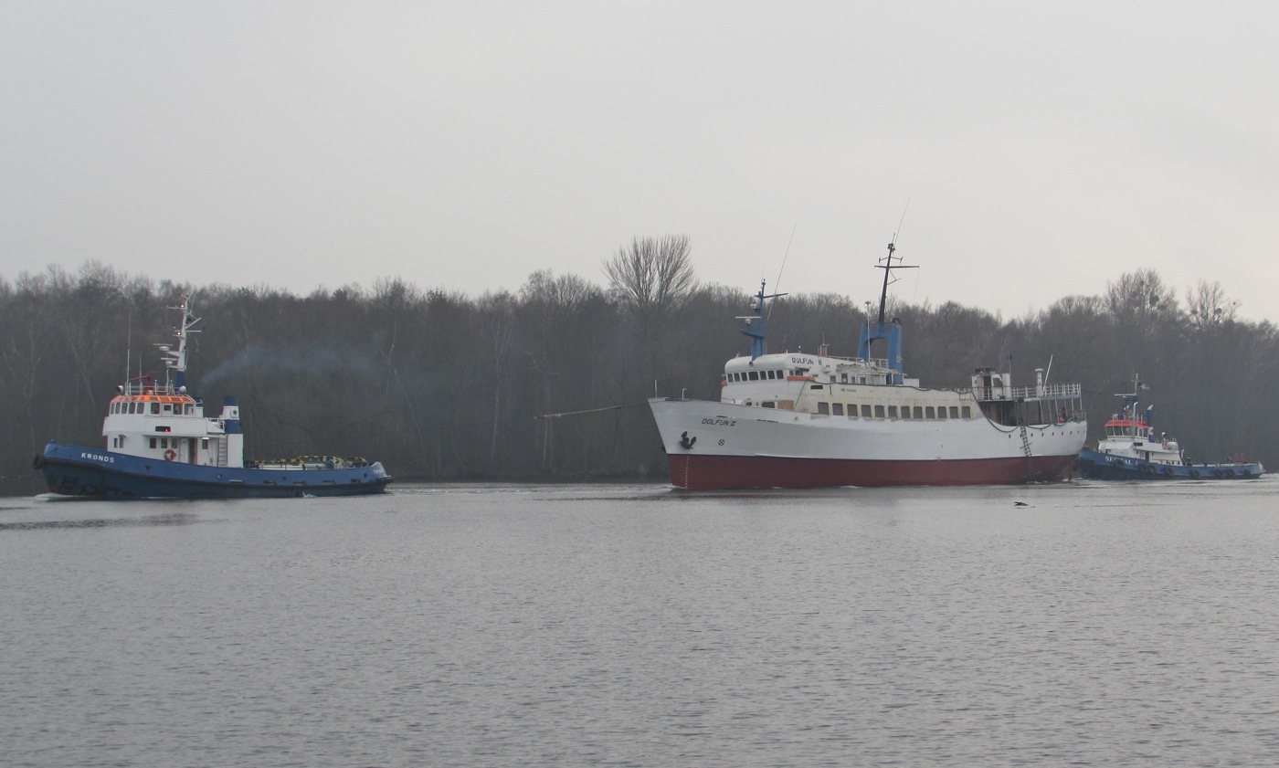 Pasażerski statek „Dolfijn II” przy wsparciu holowników „Kronos” i „Serwal 3”, odpłynął niedawno ze Szczecina. To jego pierwsza dłuższa podróż od lat. Przeszedł remont, ale prawdopodobnie czeka go jeszcze przebudowa.