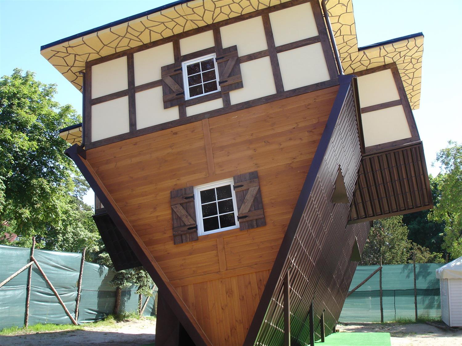 „Dom do góry nogami” stanął blisko dwa lata temu przy głównym deptaku w ulicy Kościuszki w Mielnie. To nie jedyny taki obiekt w gminie, bo piernikowa wersja powstała w Unieściu.