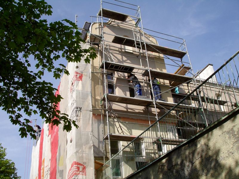 Na zdjęciu: Pracownicy firmy Inchem pracują wewnątrz i na zewnątrz przebudowywanego Domu Samotnej Matki przy ulicy Wojska Polskiego w Koszalinie.