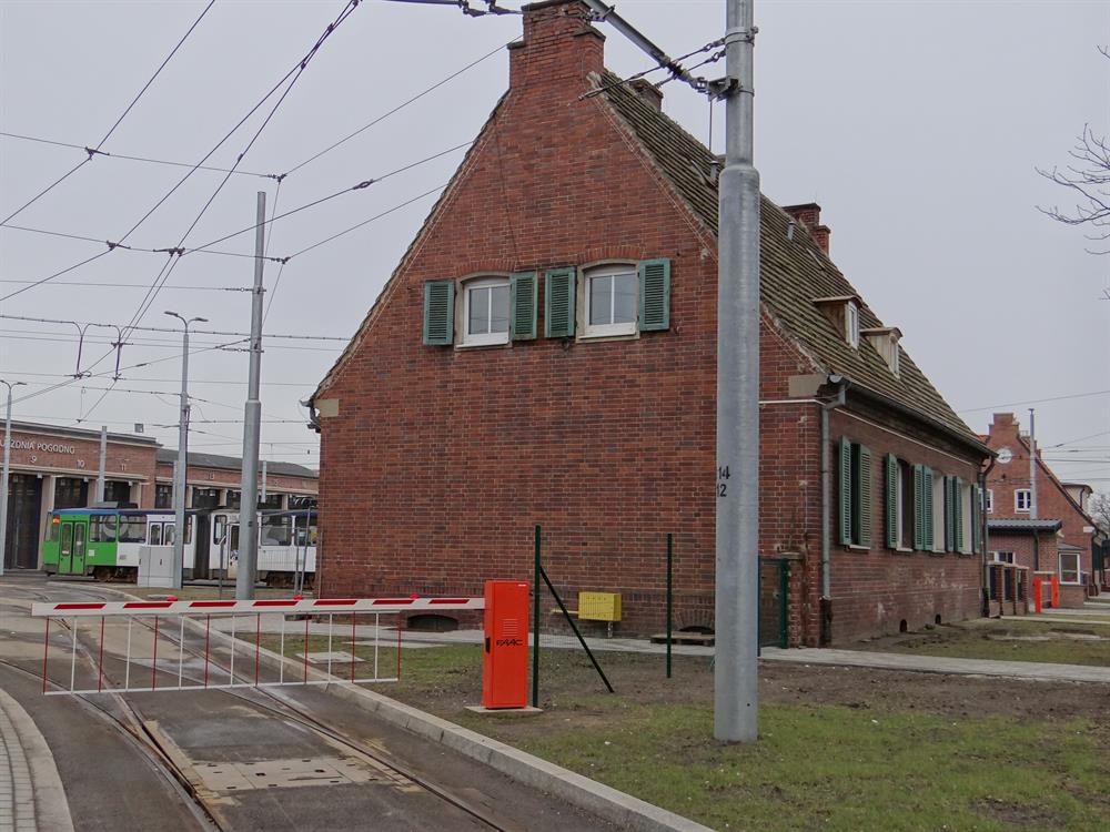 Charakterystyczny z elewacją frontową niemal bliźniaczo podobną do drugiego większego, ceglany budynek, którego przebudowa właśnie się rozpoczęła, to ostatni element – niejako dopełnienie zakończonej nieco wcześniej inwestycji, która polegała na generalnym remoncie i częściowej rozbudowie leciwej, bo 80-letniej już tramwajowej bazy wraz z unowocześnieniem i komputeryzacją jej technicznego zaplecza.