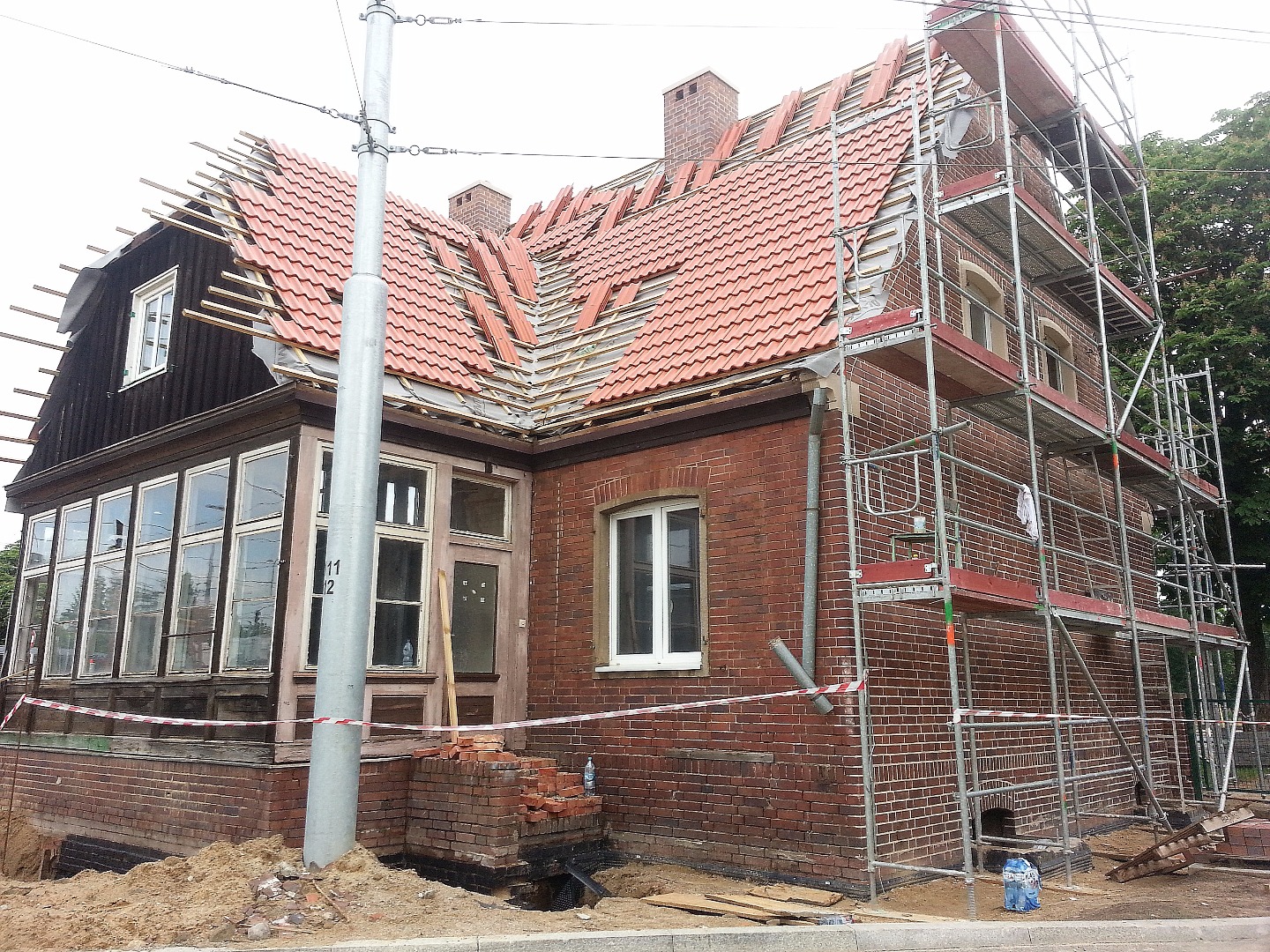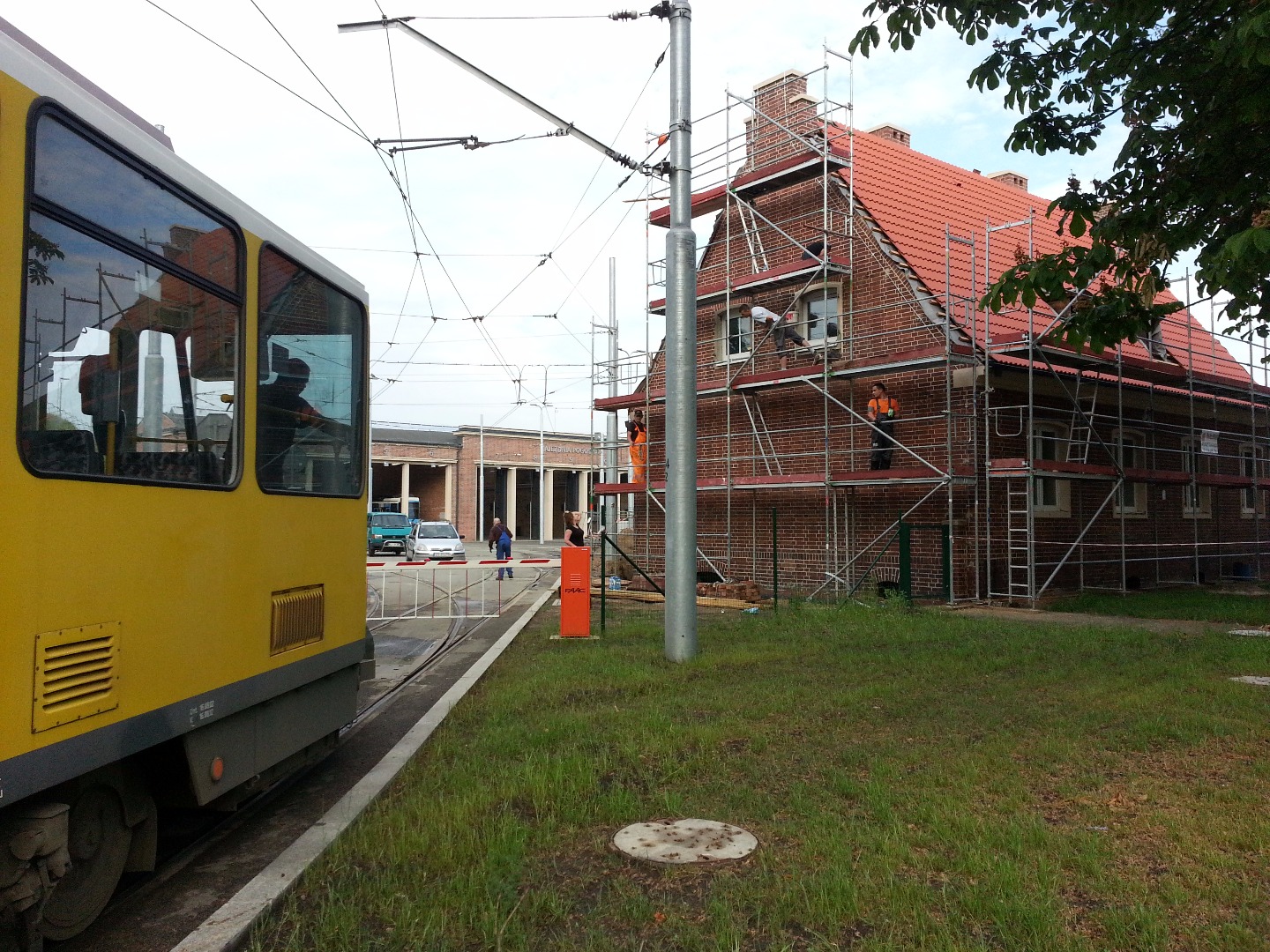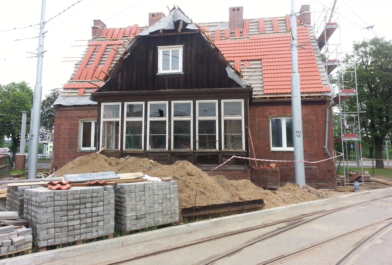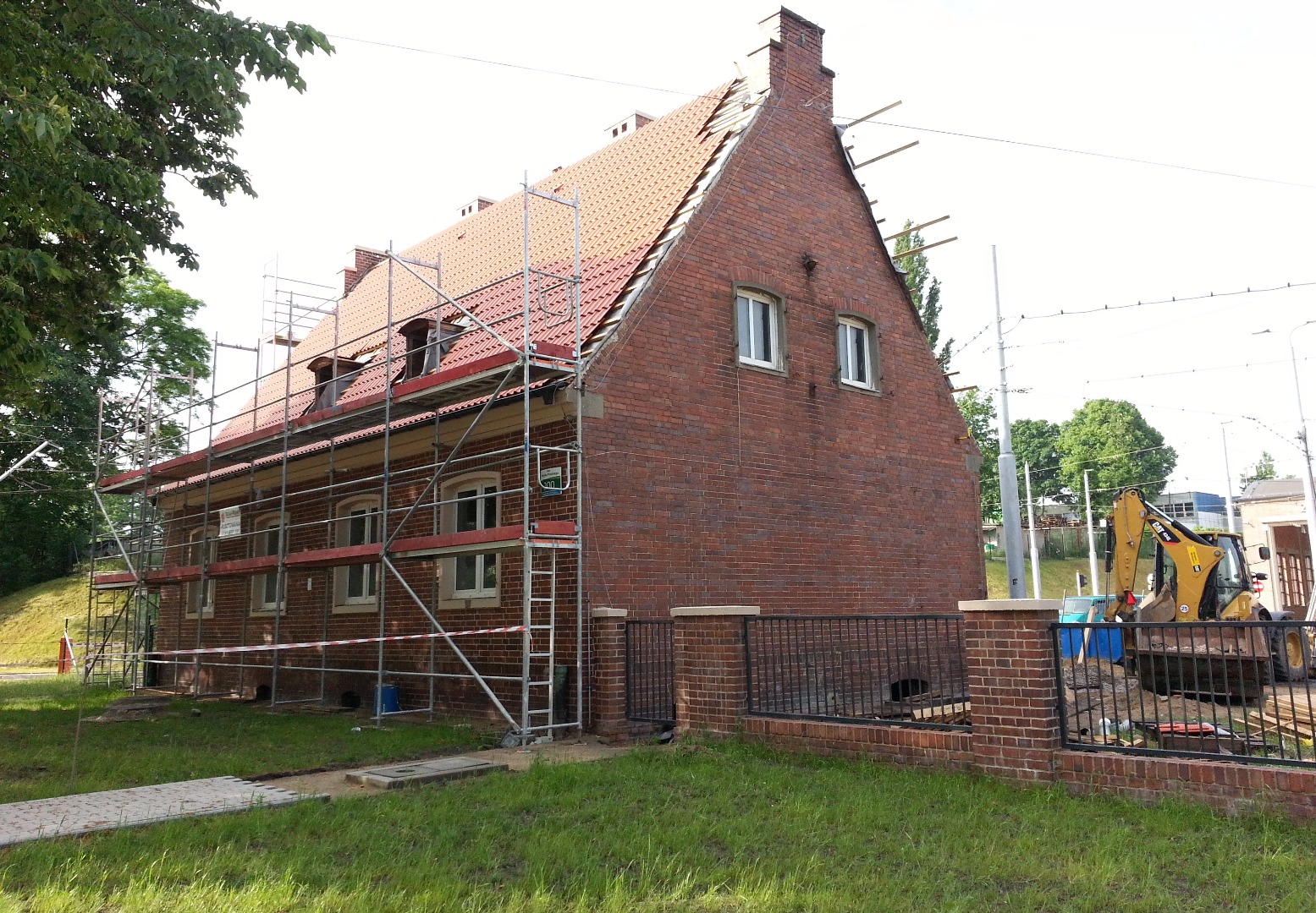Do tej pory wymieniony został dach, zakończyły się też prace przy czyszczeniu i konserwacji fug ceglanych murów zewnętrznych budynku. Wymieniona zostanie stolarka okienna. Odrestaurowana zostanie wejściowa przeszklona weranda. W pomieszczeniach, w których przed wielu laty urządzone były dwa mieszkania, a w ostatnim czasie, tj. podczas modernizacji samej zajezdni czasowo służyły także jako zaplecze administracyjne, po przebudowie i adaptacji będą przeznaczone na biura, po niezbędnych rozbiórkach trwają prace m.in. przy konstrukcji nowej klatki schodowej, podbijaniu fundamentów. Wewnątrz prowadzone są też prace związane z wykonaniem instalacji elektrycznych oraz sanitarnych. Trwa osuszanie ścian piwnicy, wykonywane są izolacje.