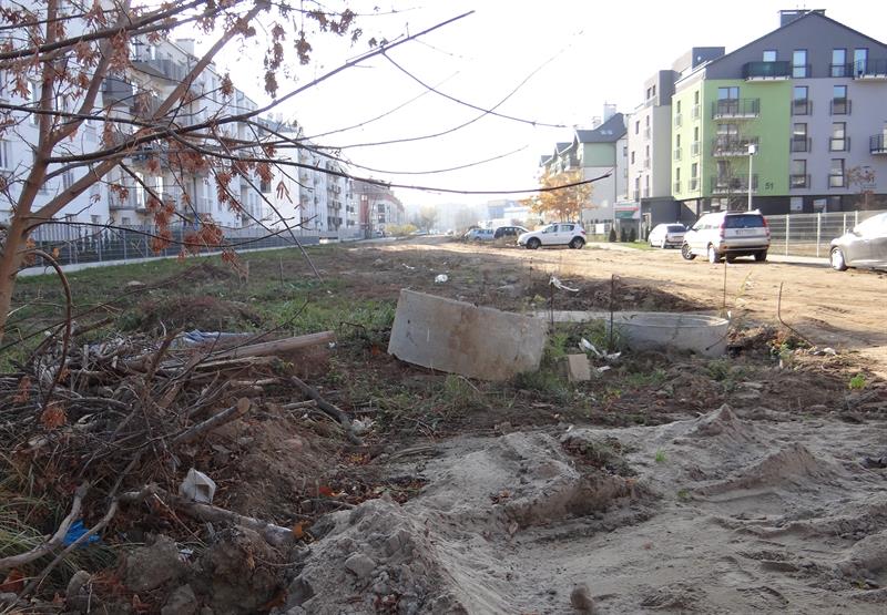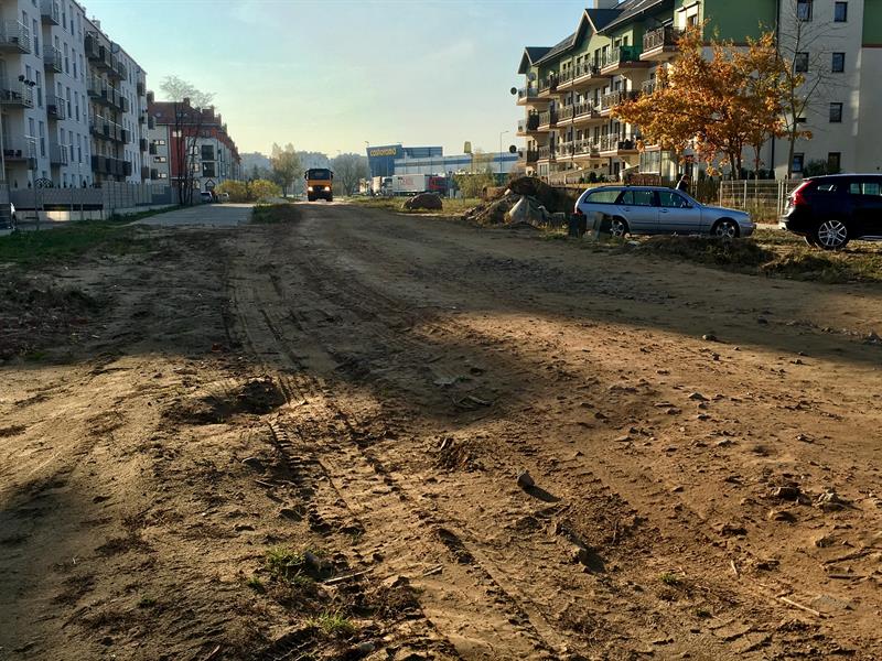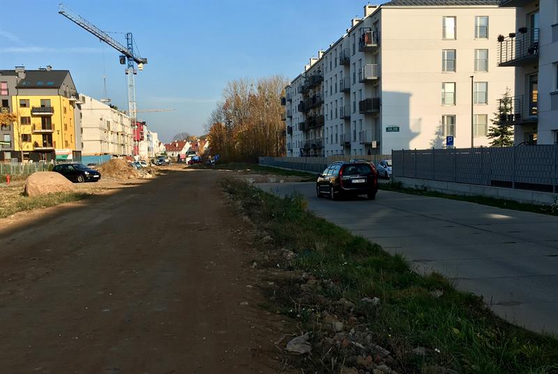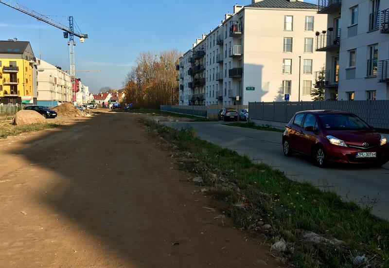Obecnie od ul. gen. Stanisława Maczka do istniejącego odcinka ulicy rozciąga się klepisko. Dukt po deszczu zamienia się w grzęzawisko. I służy wciąż głównie jako dojazd do przyległego placu budowy nowych budynków mieszkalnych, które aktualnie stawia tam spółka Siemaszko, jeden ze szczecińskich deweloperów. Natomiast w części pas ułożonych prowizorycznie płyt betonowych z odzysku służy za dojazd i dojście do zasiedlonych już od jakiegoś czasu nowych bloków, jakie z kolei zdążył tam zbudować inny ze szczecińskich deweloperów - spółka Calbud.