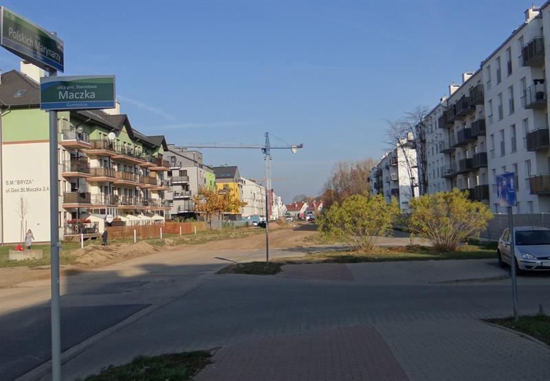 Przymiarki do tego zadania trwają od kilku lat. W tej nowej części Gumieniec za CH Ster, gdzie w ostatnich dziesięcioleciach wzniesione zostało sporych rozmiarów miasteczko mieszkaniowe o intensywnej zabudowie, a nowe bloki kolejni deweloperzy wciąż stawiają, to jedna z najbardziej wyczekiwanych inwestycji drogowych. Chodzi o zbudowanie 286 m odcinka ulicy Polskich Marynarzy od jej skrzyżowania z ul. gen. Stanisława Maczka do leśnej przecinki na wysokości, gdzie przecina ją przepływający ciek wodny Wierzbak, łączący się na obrzeżach pobliskiego parku Przygodna z rzeczką Bukową.