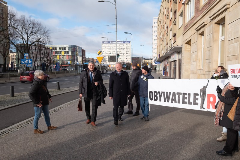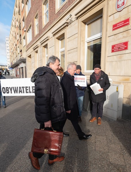 W czasie, kiedy sąd rozpatrywał zażalenia obu podejrzanych, przed gmachem pikietowała grupa Obywateli RP. „Jesteśmy z wami" skandowali, kiedy mężczyźni wraz ze swoimi obrońcami wchodzili do sądu.