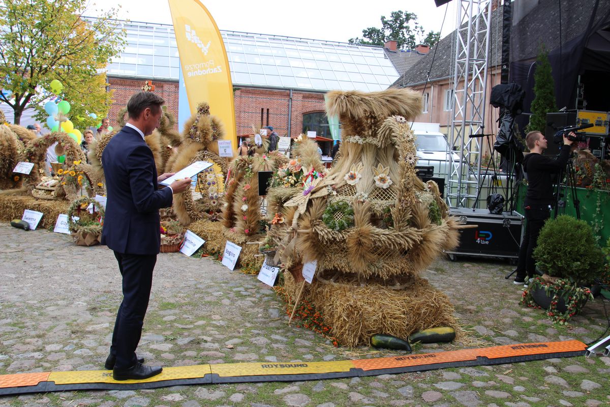 Starostami tegorocznych dożynek byli Renata i Bogdan Kostrzewscy z Jesionowa. To oni na ręce marszałka województwa zachodniopomorskiego Olgierda Geblewicza przekazali chleb wypieczony z tegorocznych zbóż. Jak zwykle przy tego typu święcie, sołectwa z terenu województwa zachodniopomorskiego zaprezentowały piękne wieńce dożynkowe. W konkursie na najładniejszy, wzięło udział 19 wieńców. Nagrodzone trzy najładniejsze wsie zachodniopomorskie, które wzięły udział w konkursie Piękna Zachodniopomorska Wieś. Laureatem zostało Stuchowo z gminy Świerzno. Nagrodą było 40 tys. zł.