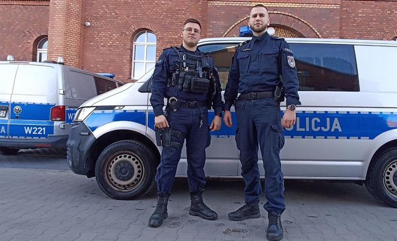 Uczeń i jego nauczyciel zawdzięczają życie dwóm funkcjonariuszom sierż. szt. Matuszowi Bieleckiemu oraz posterunkowemu Szymonowi Kużniewskiemu. Fot. KMP Szczecin