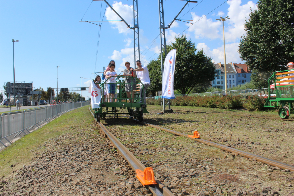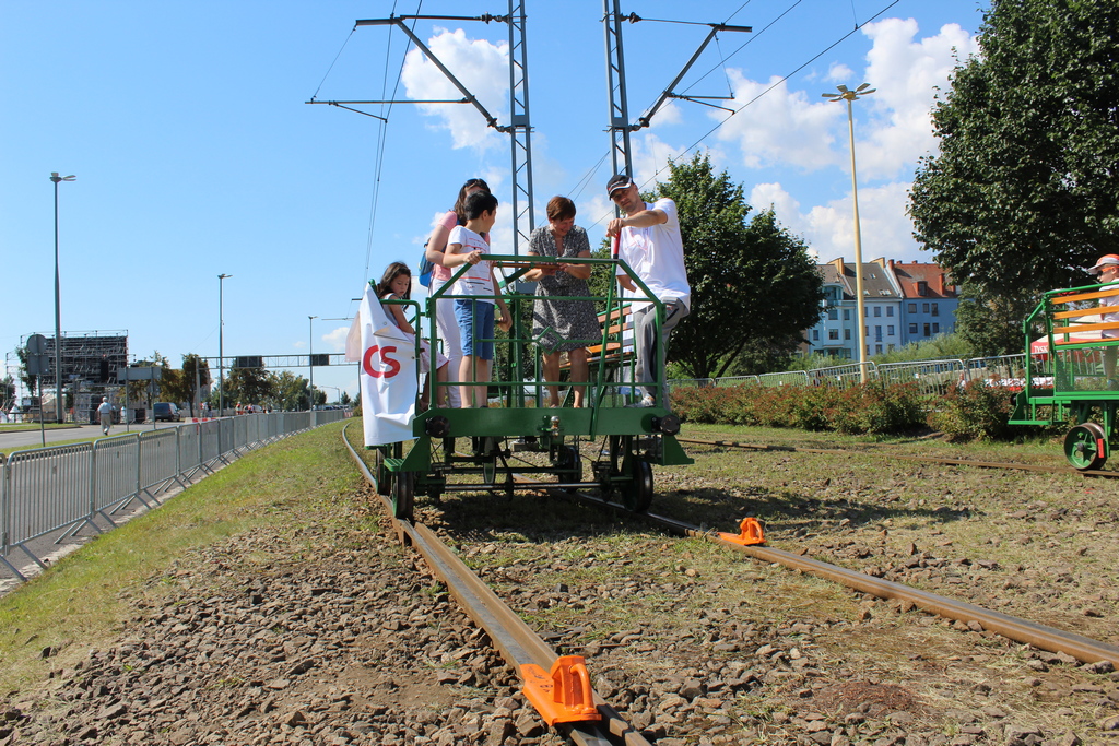Jedna z możliwości to ręczne drezyny, które na ok. 200-metrowym odcinki kursują na torach tramwajowych po ul. Jana z Kolna. Start odbywa się przy namiocie firmy OT Logistics pod Trasą Zamkową.