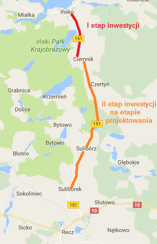 Był to kolejny etap przebudowy DW nr 151 przy wykorzystaniu środki z Regionalnego Programu Operacyjnego WZ. Na lata 2014-20 poza przebudową trasy Ińsko - Ciemnik objęty został też odcinek Świdwin – Łobez. W poprzedniej perspektywie unijnej, czyli w latach 2007-13 przebudowano przebiegający przez tereny Ińskiego Parku Krajobrazowego 10-kilometrowy odcinek Węgorzyno-Ińsko oraz 8,7-kilometrowy odcinek Choszczno-Pełczyce. Całkowita wartość obu inwestycji wyniosła 28,1 mln zł.