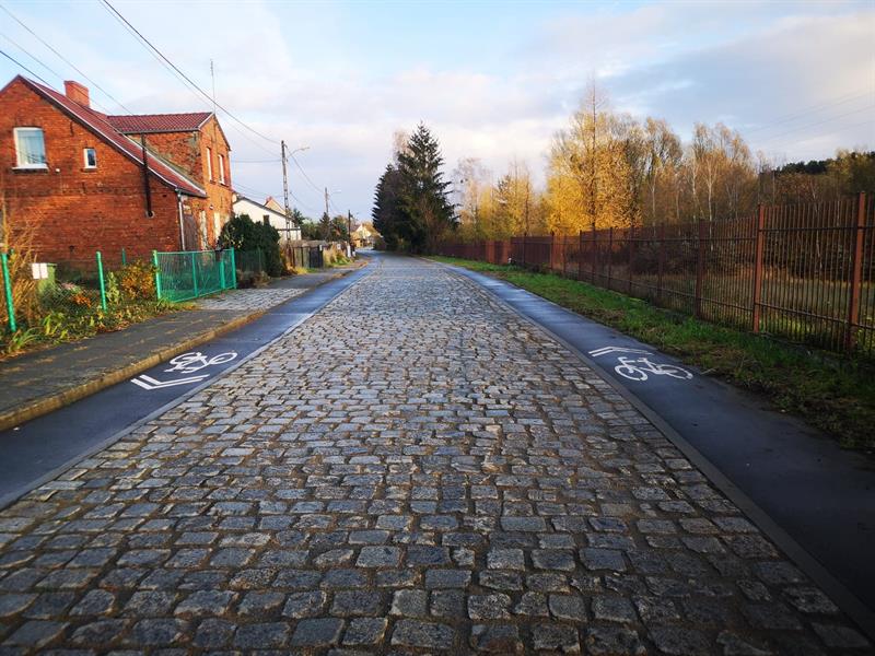 Wybrałem się dziś, aby sprawdzić nowy produkt :) Co do nawierzchni, to fakt - nikt nie obiecywał asfaltu na całej długości. I to akurat mi nie przeszkadza. Ale odcinek w samych Jezierzycach biegnie normalną ulicą, bez wydzielonej ścieżki rowerowej. Niby ruch samochodów nie jest duży, ale jednak...