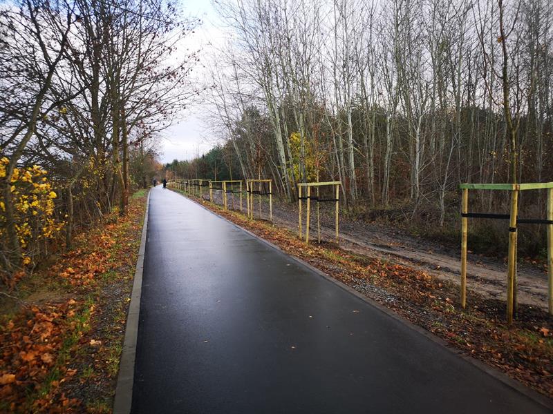 Szlak o łącznej długości 9,3 km jest szczecińską częścią sieci dróg dla rowerów tzw. Trasy Pojezierzy Zachodnich. Jej budowa trwała od lutego tego roku, a ostatnim etapem inwestycji były nasadzenia. W wyniku tych ostatnich wzdłuż drogi pojawiło się 49 nowych drzew i 220 krzewów. Dodatkowo, jeszcze w tym roku, przy trasie ma być urządzone miejsce odpoczynku dla rowerzystów z wiatą, ławkami i stojakami na rowery. Usytuowane ono będzie mniej więcej w połowie długości trasy.
