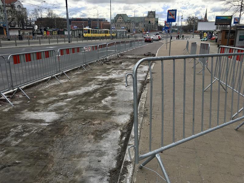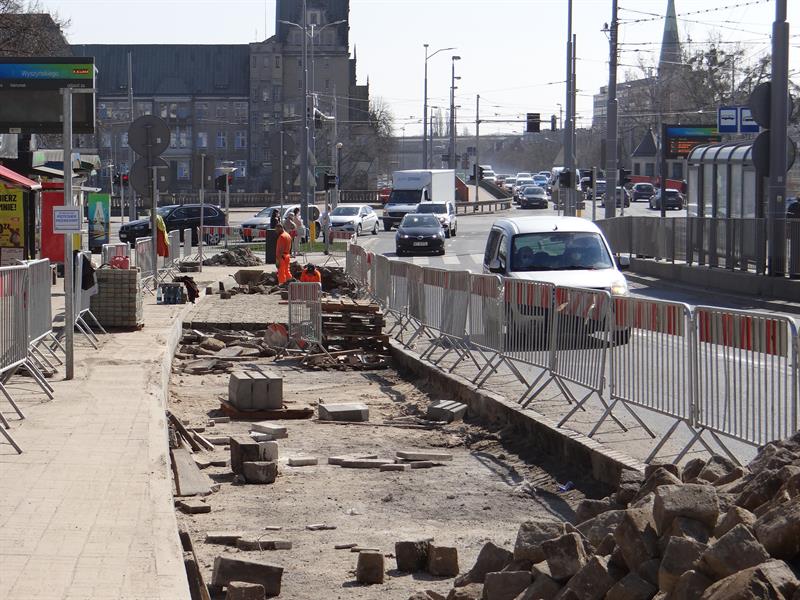 Prace brukarskie, zlecone w ramach bieżącego utrzymania przez ZDiTM, oznaczają, że dla autobusów wszystkich linii zwykłych i nocnych, tj. 52, 62, 70, 75, 76, 521, 527 i 528 przystankiem zastępczym jest ten w pasie nowego torowiska, przy którym zatrzymują się tramwaje linii 2, 7 i 8 oraz od niedawna ponownie także autobusy wszystkich linii pośpiesznych A, B, C, G i H. Po wyłączeniu z użytkowania od 1 bm. także zatoki przystankowej przy jezdni w kierunku prawobrzeża i tuż przed prawoskrętem w ul. Nabrzeże Wieleckie (do dworca), dla autobusów tych linii, które jada na prawobrzeże, tymczasowym przystankiem jest także ten w pasie torowiska. W przypadku pozostałych linii (75 oraz nocnych 521, 527, 528) autobusy zatrzymują się tuz za zakrętem w zatoce przystankowej przy jezdni ul. Nabrzeże Wieleckie, tym dla linii 70 i 526 na wysokości przystanku dla tramwajowych "szóstek" w kierunku Gocławia.