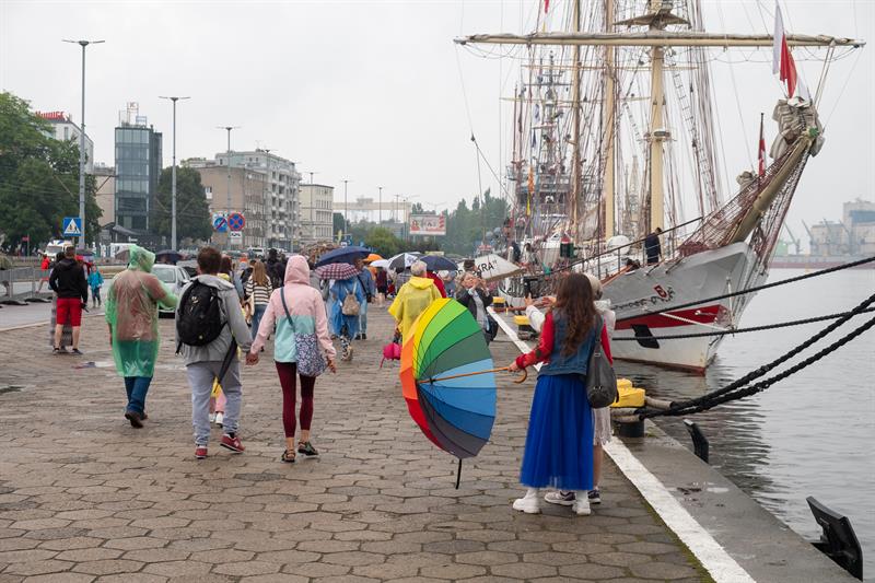 Drugi dzień Żagli 2022 w Szczecinie przebiega pod znakiem zmiennej pogody. Od rana prawie nieprzerwanie padał deszcz, ale później pogoda się poprawiła się i momentami zza chmur zaczęło nawet przebijać słońce.