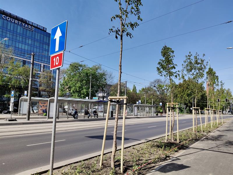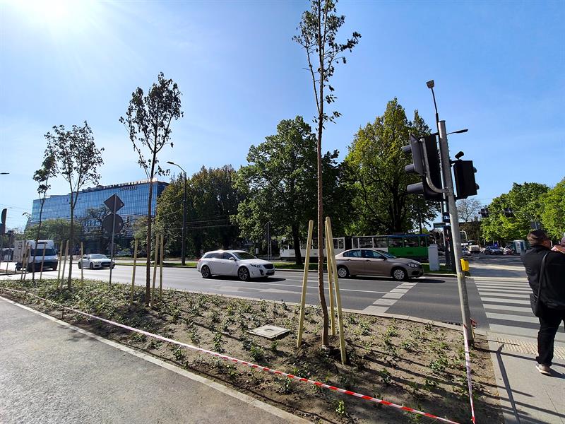 Wyglądają bardzo obiecująco. Pod warunkiem, że przetrwają. Niestety, co najmniej dwa z młodych klonów czerwonych już usychają. Niepokoi fakt, że zarówno przy nich, jak i przy pozostałych nowo nasadzonych drzewach nie zamontowano worków nawadniających, które zapewniłyby ich korzeniom stały i równomierny dostęp do odpowiedniej ilości wody.