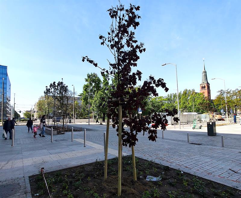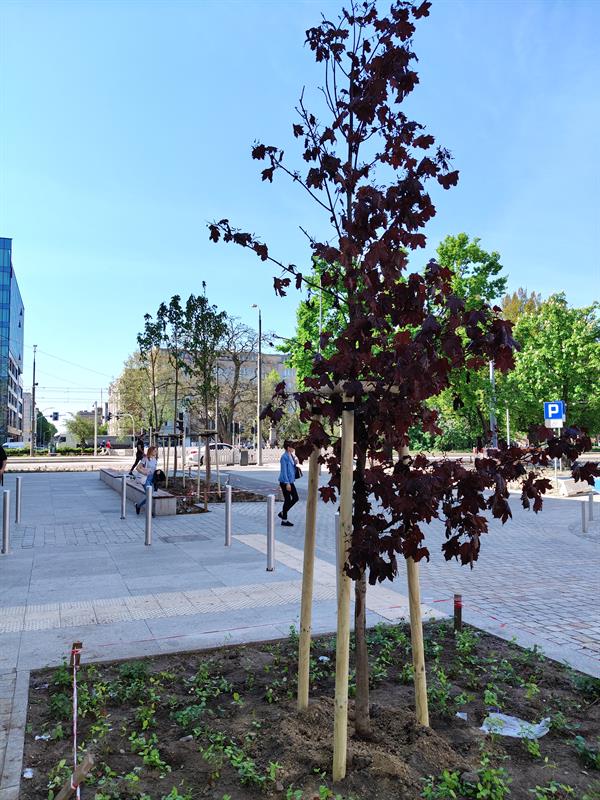 Trwa akcja zazieleniania pl. Zwycięstwa. Wśród wcześniej posadzonych bylin pojawiły się drzewa. To rosłe sadzonki - w sumie 34 - klonów czerwonych, lip drobnolistnych oraz klonów pospolitych w odmianie ‘Pyramidali’.