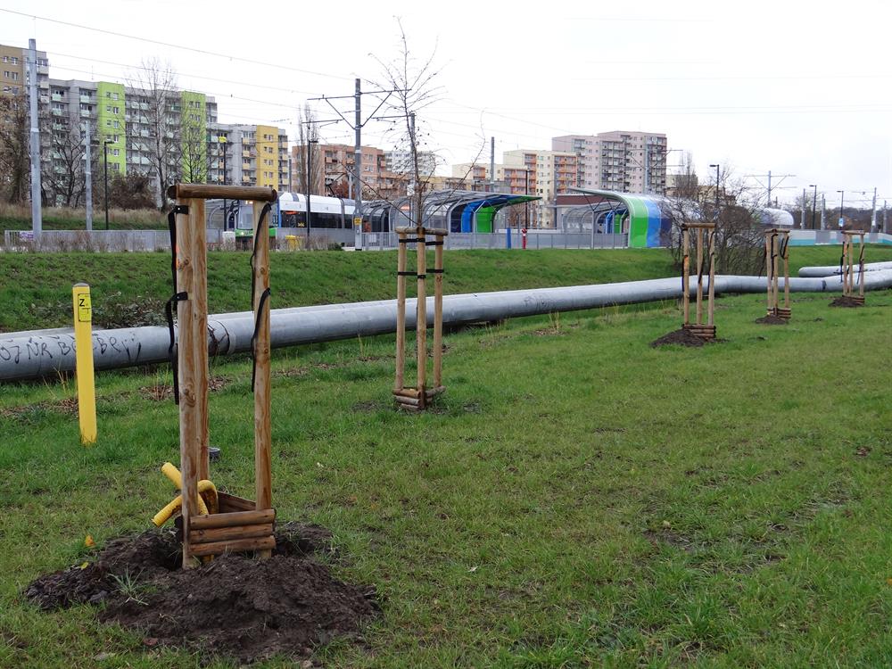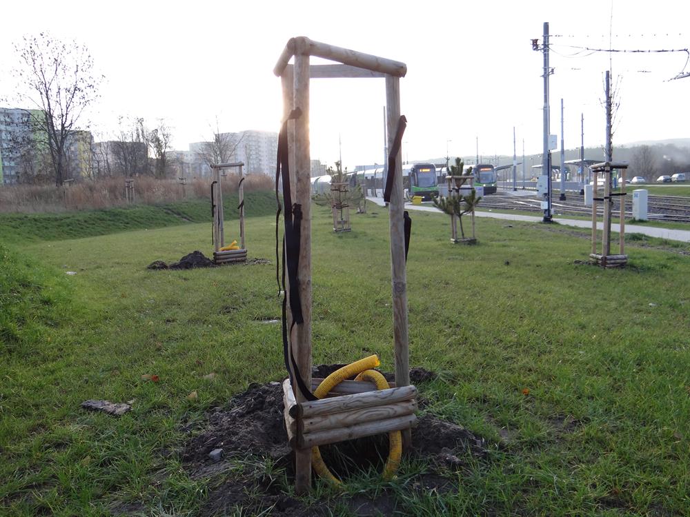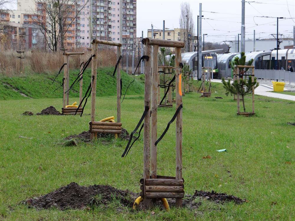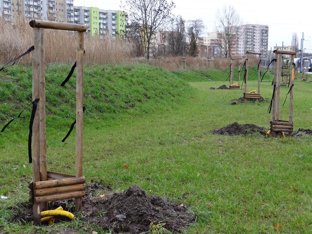 Sygnał o wykopkach w pasach zieleni obok torowiska przekazała nam jedna z naszych Czytelniczek. Jej uwagę zwróciły doły i fruwające na wietrze wstążki przy solidnych stojakach bez roślin w rejonie pętli. Kiedy pojawiliśmy się na miejscu i w okolicy, odkryliśmy, że takich enklaw z rozkopami jest tam dużo więcej.