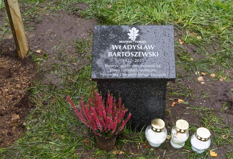Drzewko Pamięci poświęcone prof. Władysławowi Bartoszewskiemu posadzono w sobotę 22 października na Cmentarzu Centralnym w Szczecinie. Wydarzenie zorganizowało Stowarzyszenie Czas Przestrzeń Tożsamość i jego prezes - Andrzej Łazowski. Gościem honorowym był były minister spraw wewnętrznych Andrzej Milczanowski.