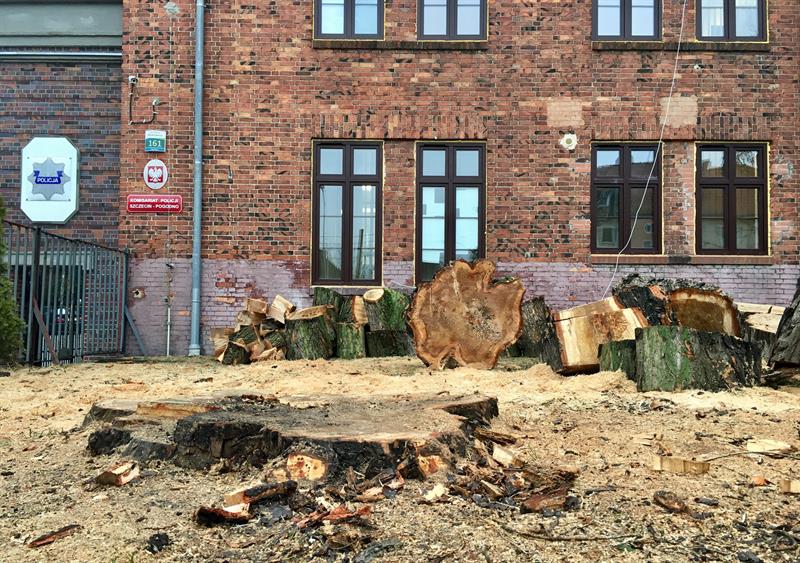 Zniknęła zielona ściana jaką tworzyły drzewa, odgradzające siedzibę komisariatu od sąsiednich ulic. Jak kilka lat temu przeprowadzona wycinka od strony ul. Wernyhory. Z tą różnicą, że tym razem nie było społecznego protestu przeciwko ingerencji w środowisko i pejzaż tej części Pogodna. Choć i teraz poruszenie opinii publicznej było niemałe.