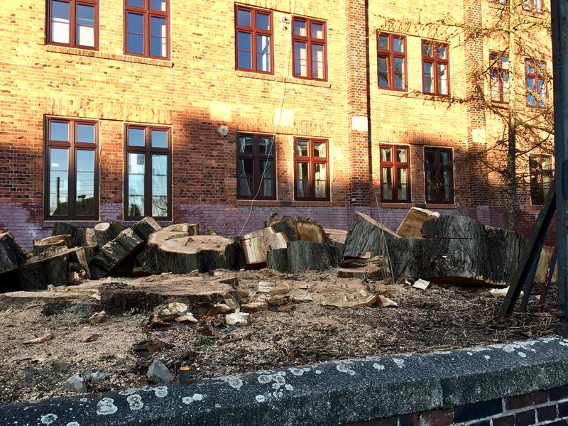 Widok jest porażający: w dziesiątki grubych plastrów pocięte pnie wiekowych drzew o imponujących obwodach, a do tego pryzmy z setek konarów i gałęzi, w jakie zmieniono korony tychże przedwojennych okazów. To wszystko przy ul. Mickiewicza, u zbiegu z Janickiego, a za ogrodzeniem wspólnym dla Sądu Apelacyjnego oraz Komisariatu Policji Szczecin Pogodno.