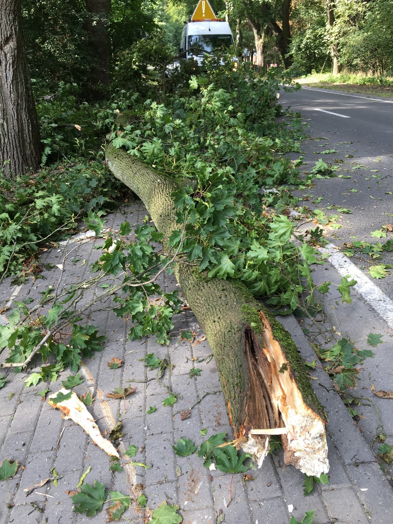W sobotę ok. godz. 11 duże drzewo przewróciło się na ulicę Miodową w Szczecinie. Zdarzenie miało miejsce w okolicy Polany Miodowej - popularnego miejsca piknikowego pomiędzy Głębokiem a Osowem.