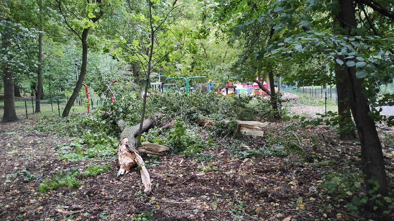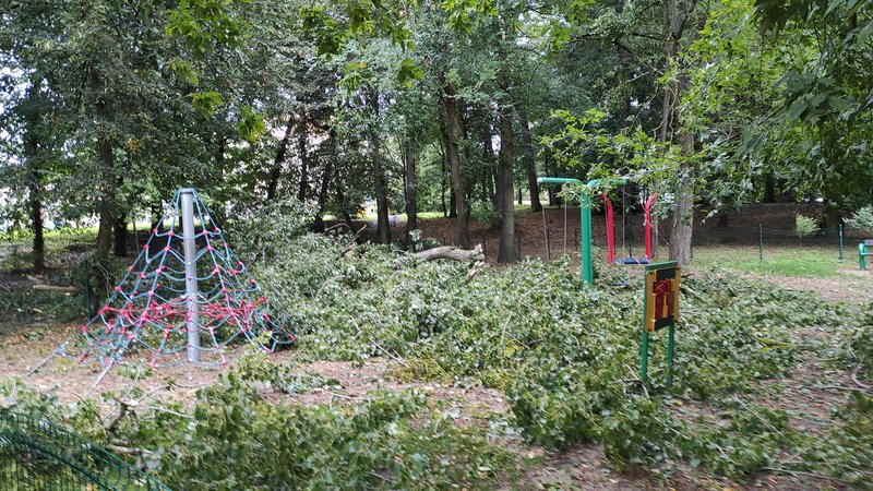 Szczęśliwie do zdarzenia doszło w godzinach nocnych, kiedy nikogo nie było na placu. Potężne konary upadły tuż przy urządzeniach do zabawy.