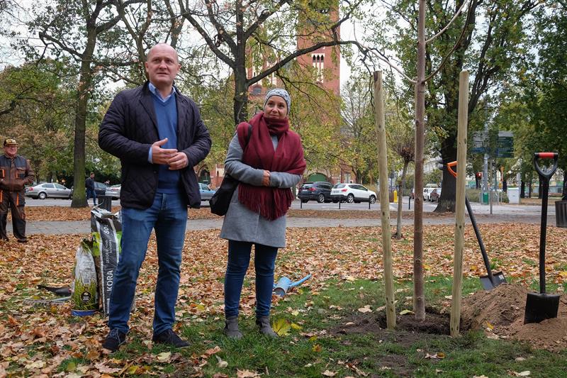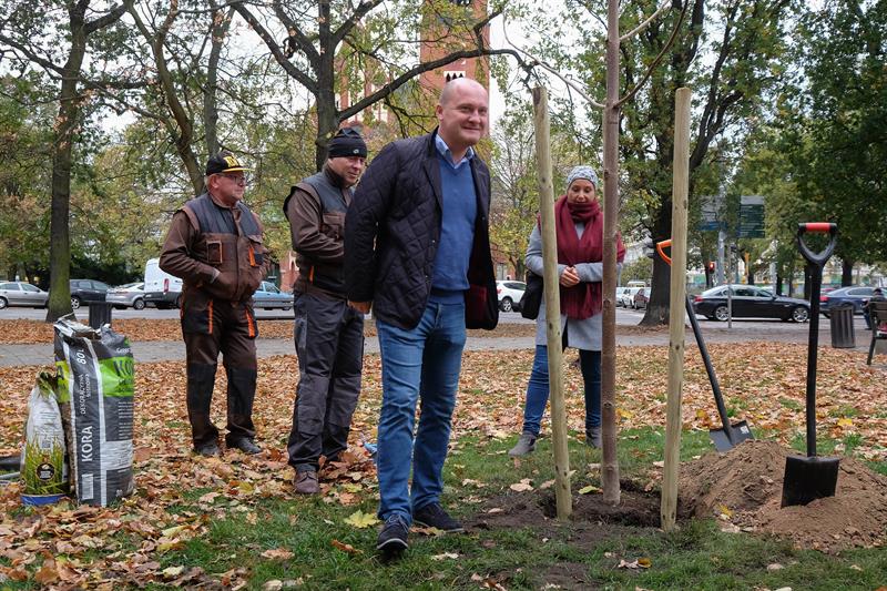Na zdjęciu: Prezydent Piotr Krzystek na finał jesiennej edycji programu "Platan" wybrał drzewo i miejsce - jak się zdaje - o symbolicznym znaczeniu. Posadził bowiem na pl. Zwycięstwa - jeszcze przed II turą wyborów, w której zabiega o kolejną reelekcję - paulownię zwaną drzewem szczęścia.