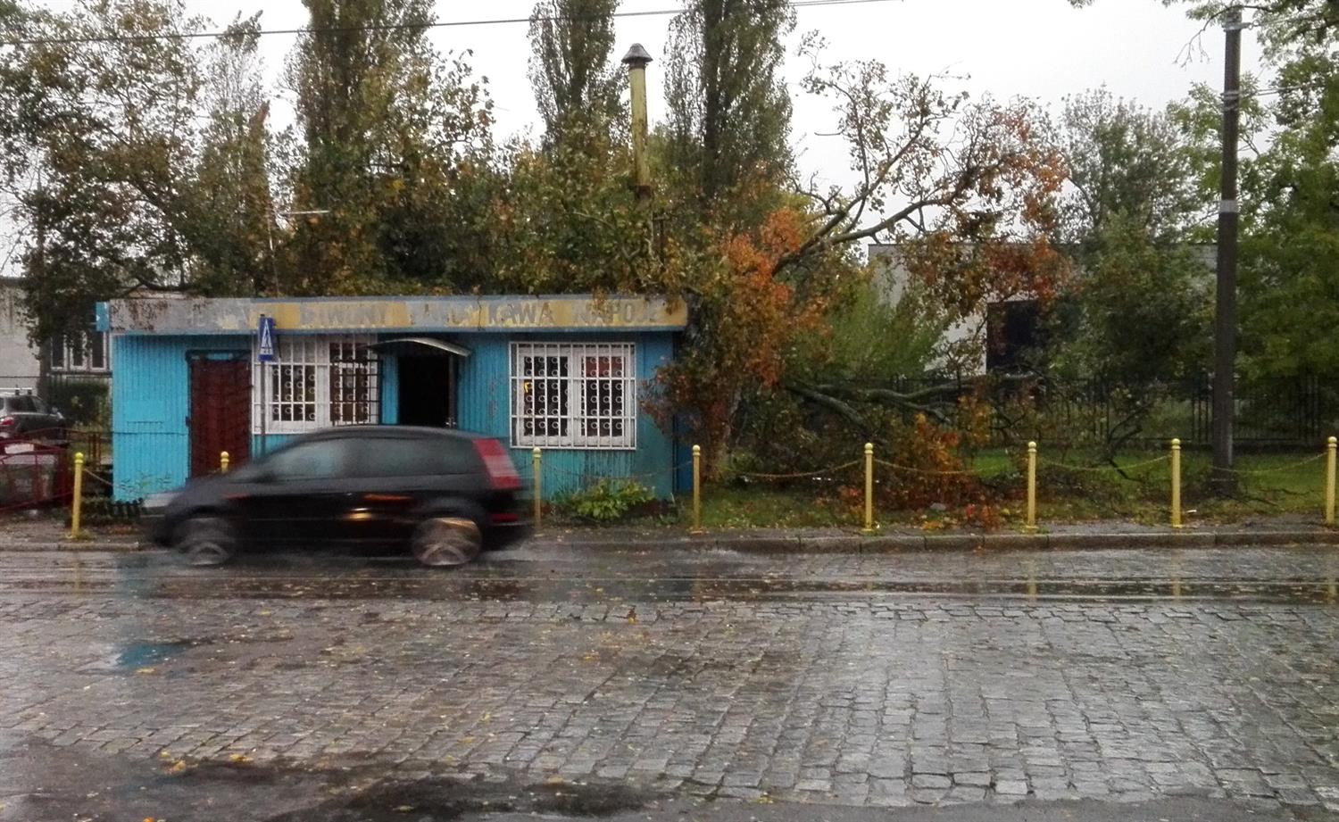 Gdy pasażerowie dotarli na samą pętlę, gdzie przystanki mają autobusy 74, 75 i 105, i spojrzeli w kierunku podupadłego pawilonu "U Iwony" (z napojami), zobaczyli, że na obiekt upadło rosnące na zapleczu - sporych rozmiarów - drzewo. Wiatrołom obejrzała obsługa tego punktu gastronomicznego. Prawdopodobnie nikt nie ucierpiał.
