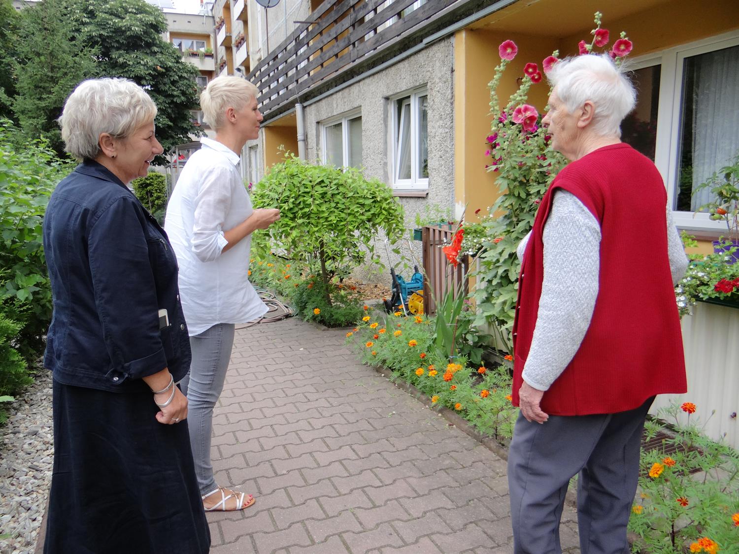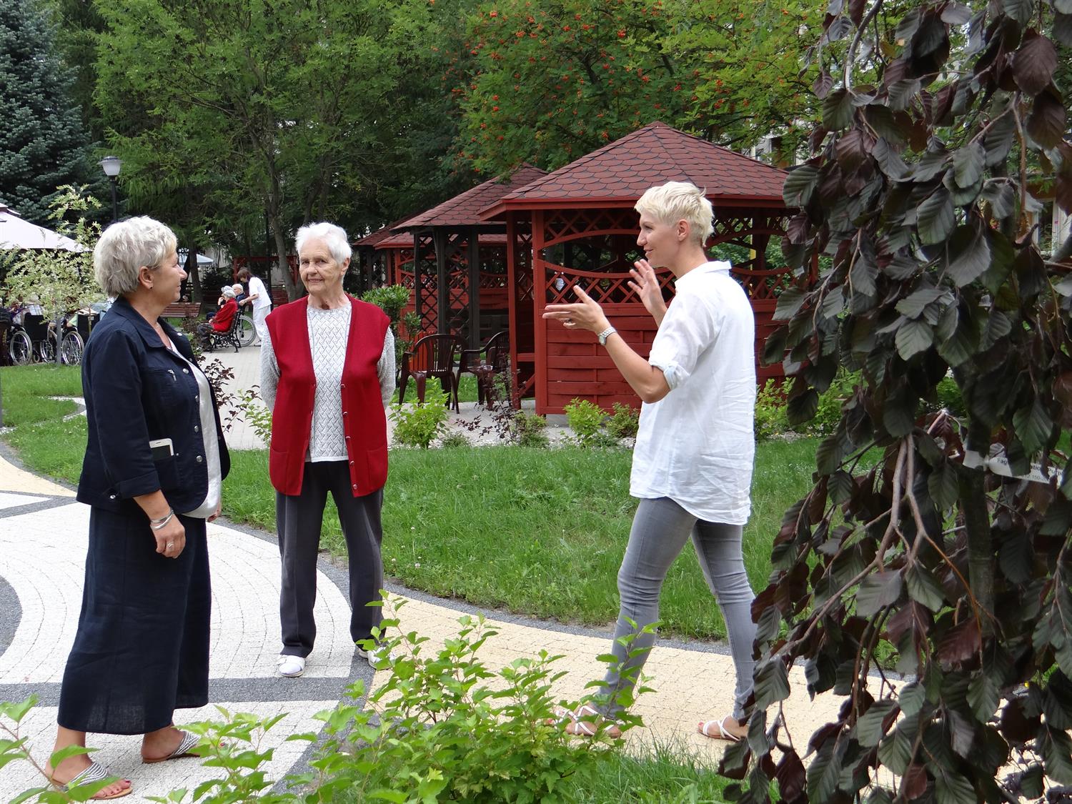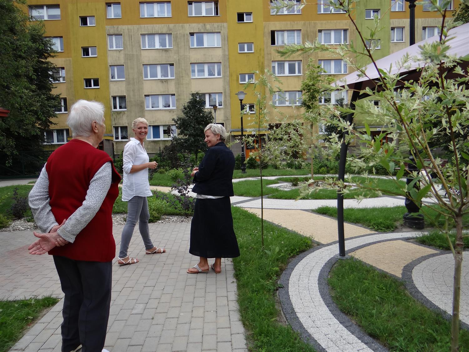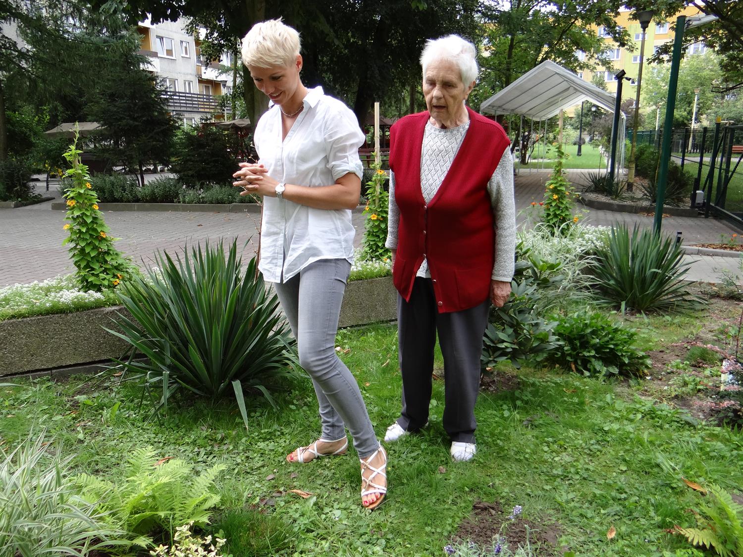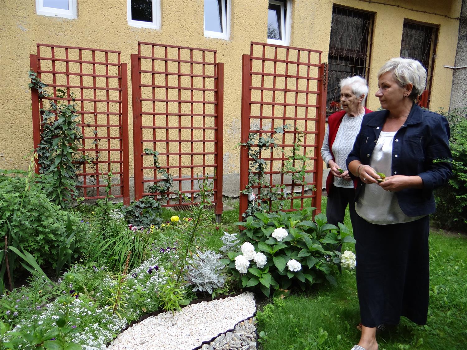Na zdjęciach: pani Jadwiga Gaj z towarzystwie terapeutek Heleny Sawczyszyn, Magdaleny Niżniowskiej i Molki w ogrodzie DPS - Domu Kombatanta i Pioniera Ziemi Szczecińskiej przy ul. Romera i ich przydomowy ogród.