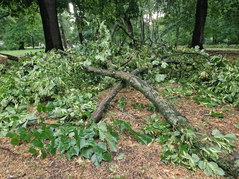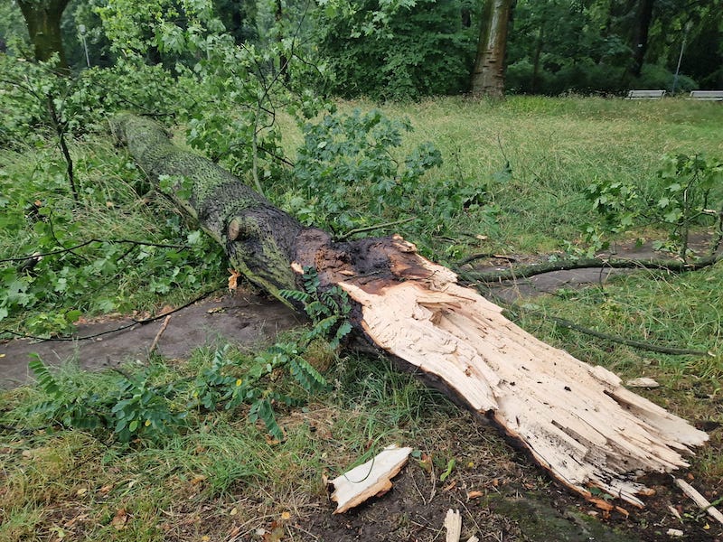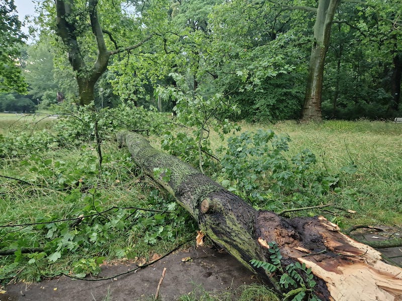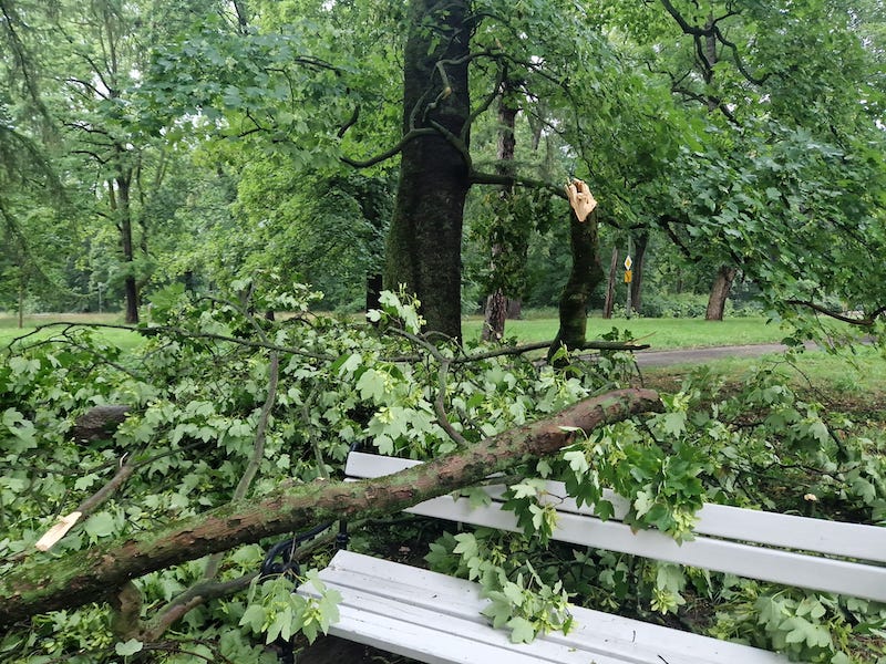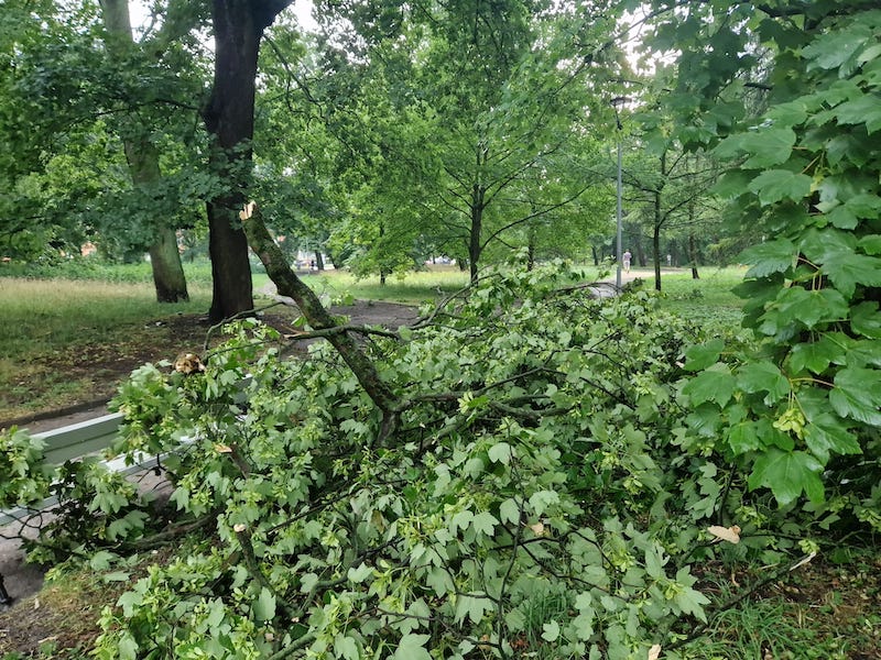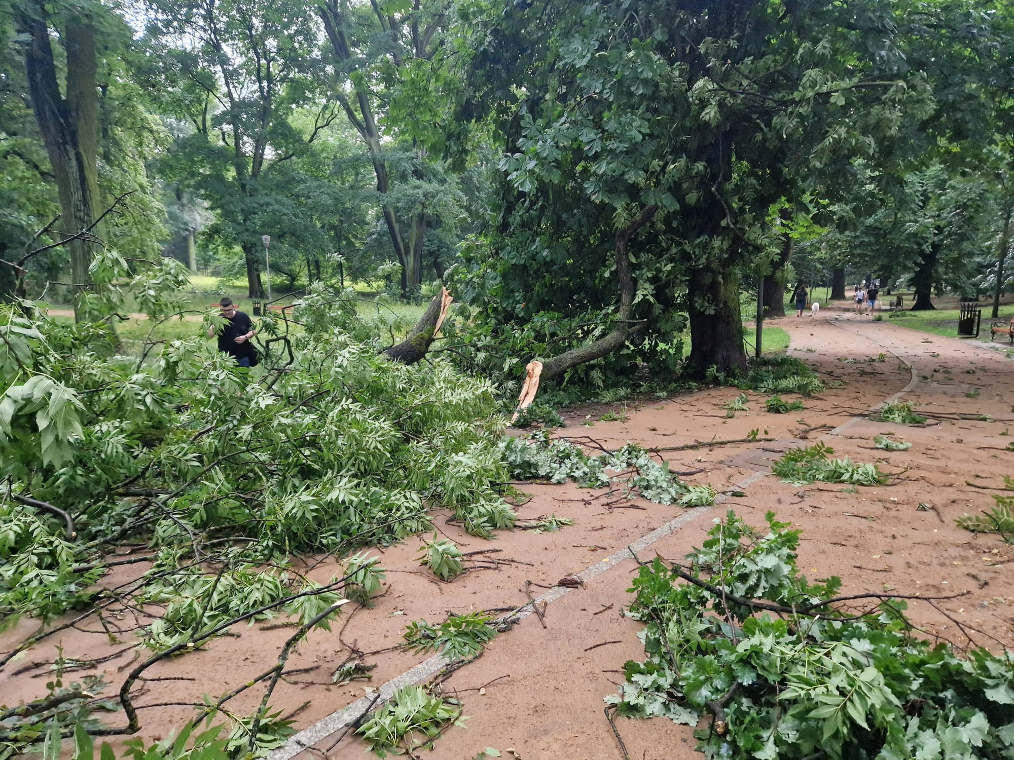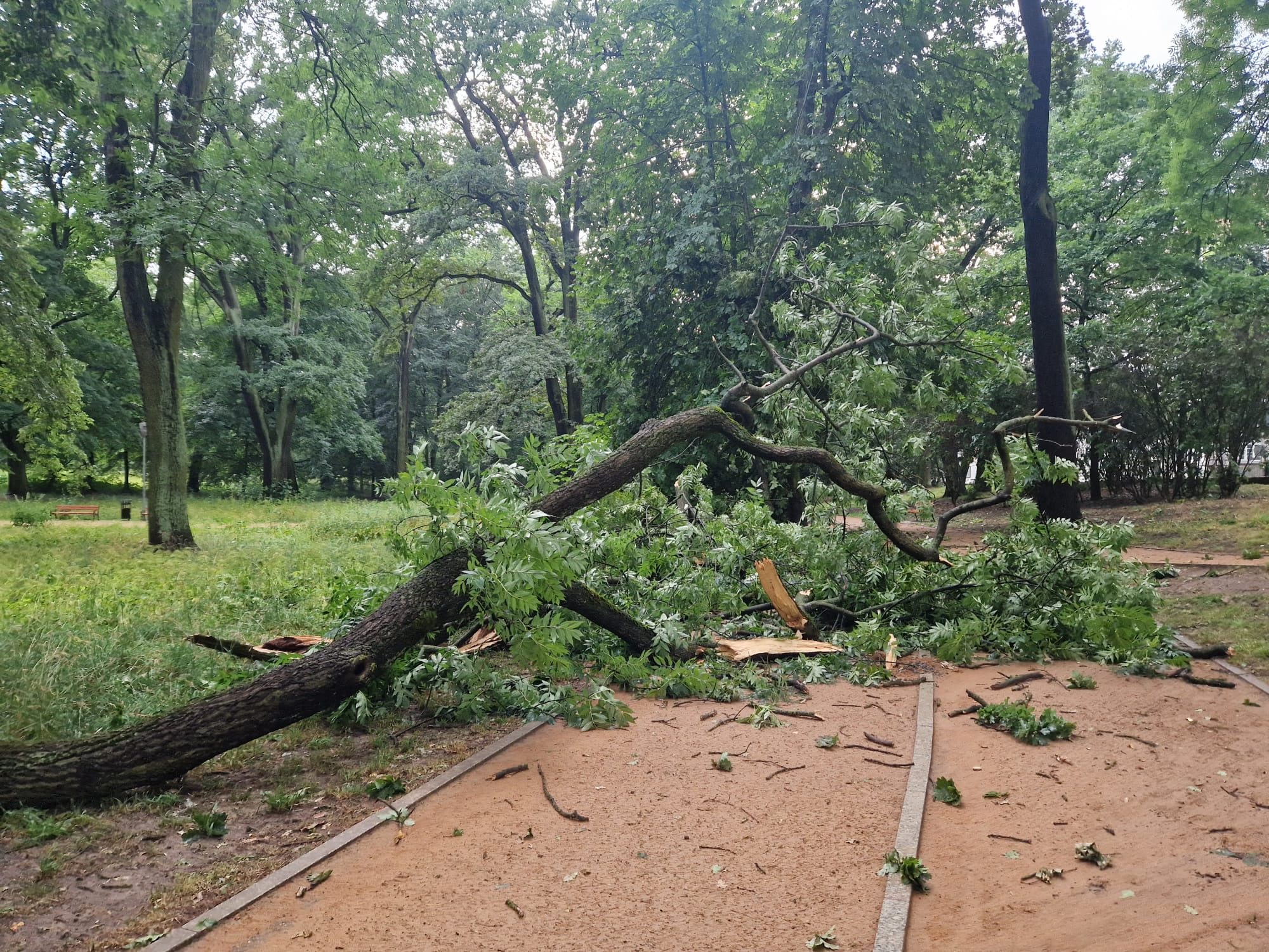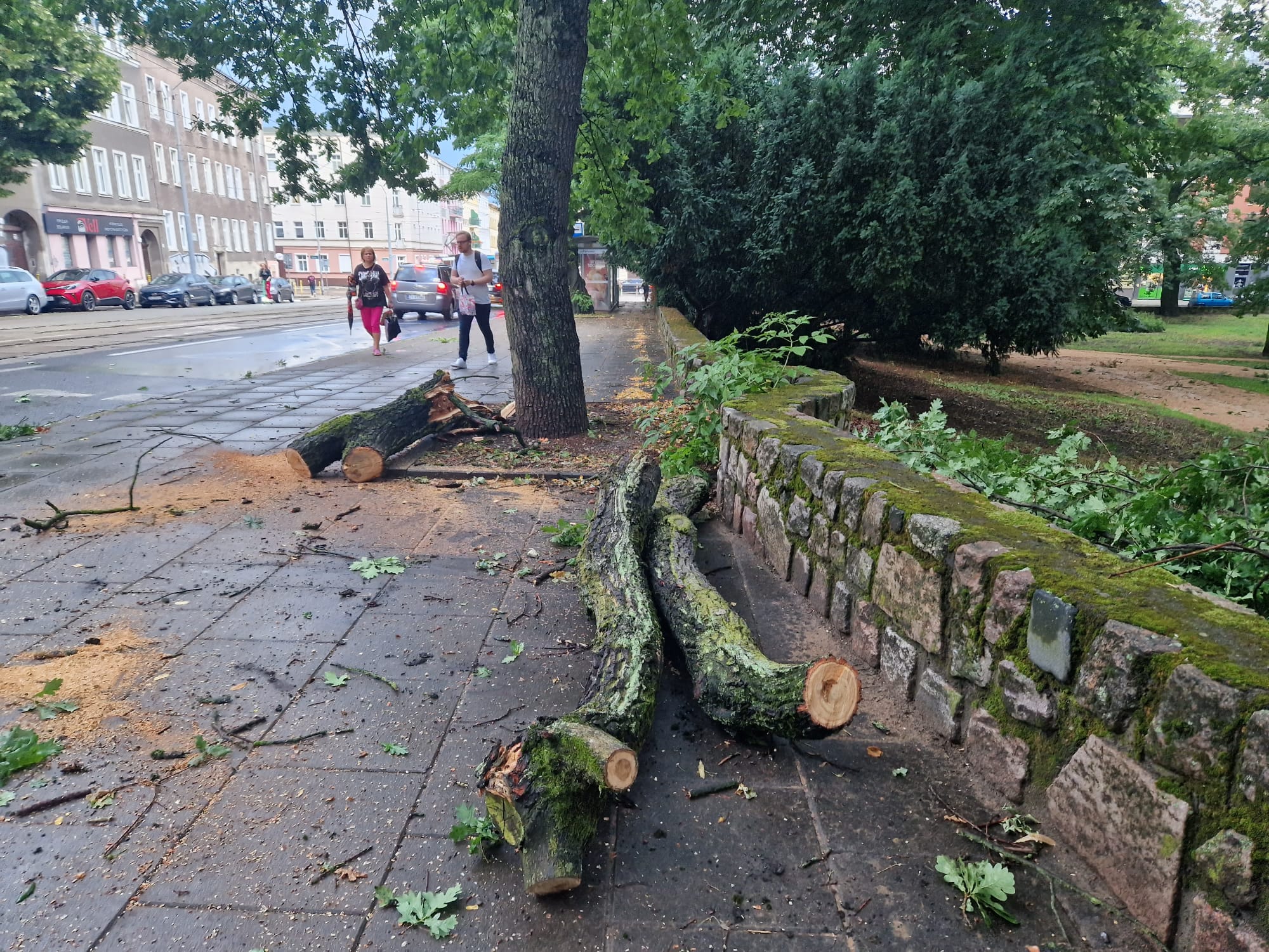 Silny wiatr dał o sobie znać także w innych częściach Szczecina. W parku Żeromskiego połamane drzewa spadły na alejki i pobliski chodnik.