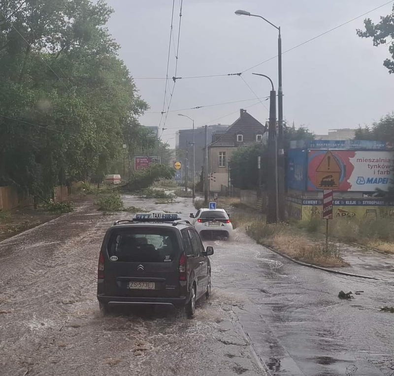Nie lepiej jest też po lewobrzeżnej stronie Szczecina. Zalane jest skrzyżowanie na ul. Dubois. Z kolei na ul. Stalmacha w efekcie nawałnicy złamało się drzewo i spadło na sieć trakcyjną. Tramwaje w stronę Gocławia nie kursują.