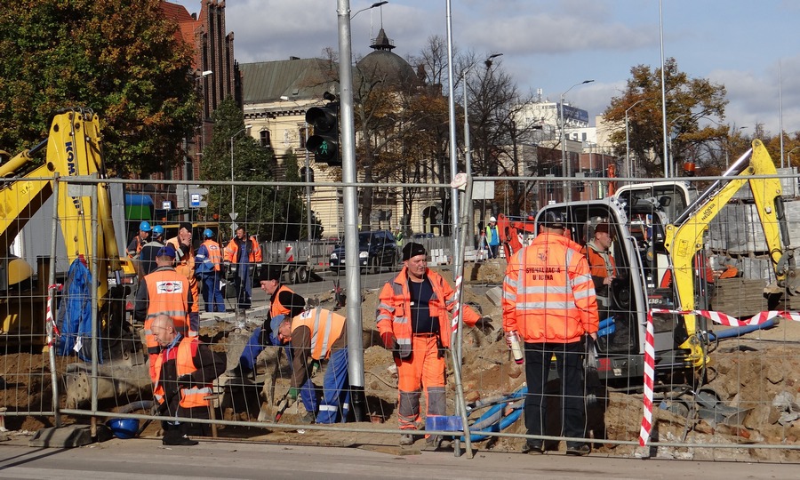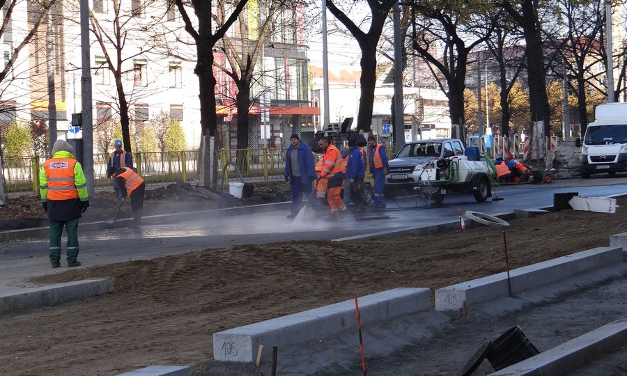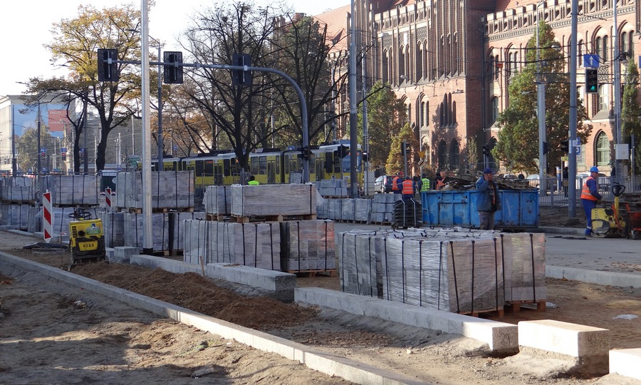 Jak informuje Jarosław Gaszyński, rzecznik prasowy spółki Energopol Szczecin S.A., generalnego wykonawcy inwestycji, z uwagi na technologię asfaltowania wyznaczone będą w sama nawierzchnia będzie z kolei tak odseparowane, by przechodnie nie musieli po niej chodzić. Będą to najpewniej tymczasowe, prowizoryczne pomosty. Rozpoczęły się również roboty brukarskie w pasach pobocza, gdzie urządzone zostaną miejsc parkingowe, chodnik z pasem ścieżki rowerowej między nimi. Trwają tez prace instalacyjne przy sygnalizacji ulicznej, jej okablowania, nowym prawoskręcie z ul. Wyszyńskiego w al. Niepodległości, montażu latarni. Pojawiły się też przy placu przebudowy ponownie robotnicy spółki Irma, która wcześniej na zlecenie SEC-u wymieniała ciepłociąg i zostawiła po sobie niedoróbkę rejonie przejścia dla pieszych na pl. Żołnierza Polskiego i tworzyły się tam po deszczach bajora. Wzdłuż prawdo pasa jezdni od krawężnika do skrzyżowania z ul. Tkacką skuli pas asfaltowej nawierzchni i poprawiają tam odpływ kanalizacji deszczowej, tak bz była ona w końcu drożna.©℗