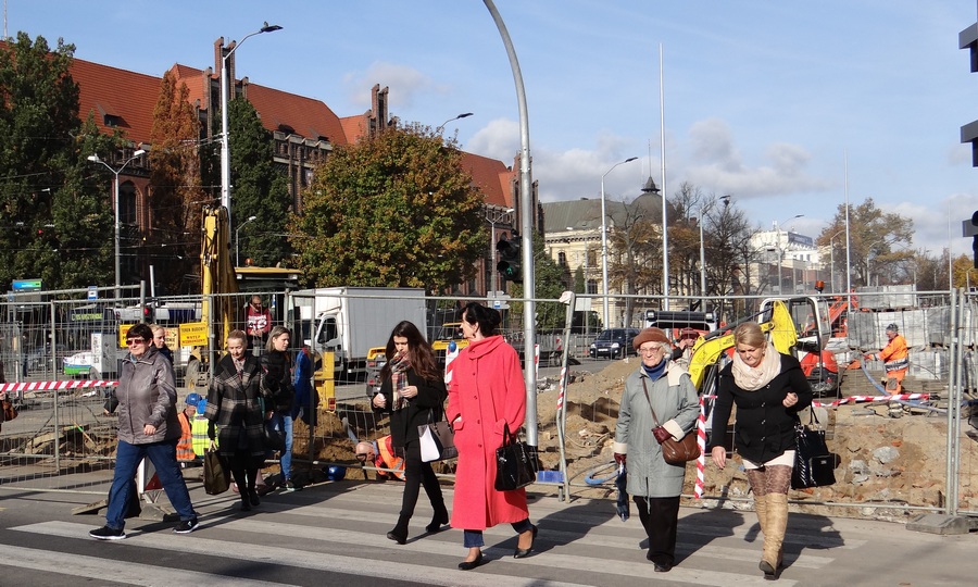 W środę i w czwartek pieszych czekają kolejne utrudnienia przy pokonywaniu przejść dla pieszych w przebudowywanej alei Niepodległości między Bramą Portową i pl. Żołnierza Polskiego w Szczecinie.