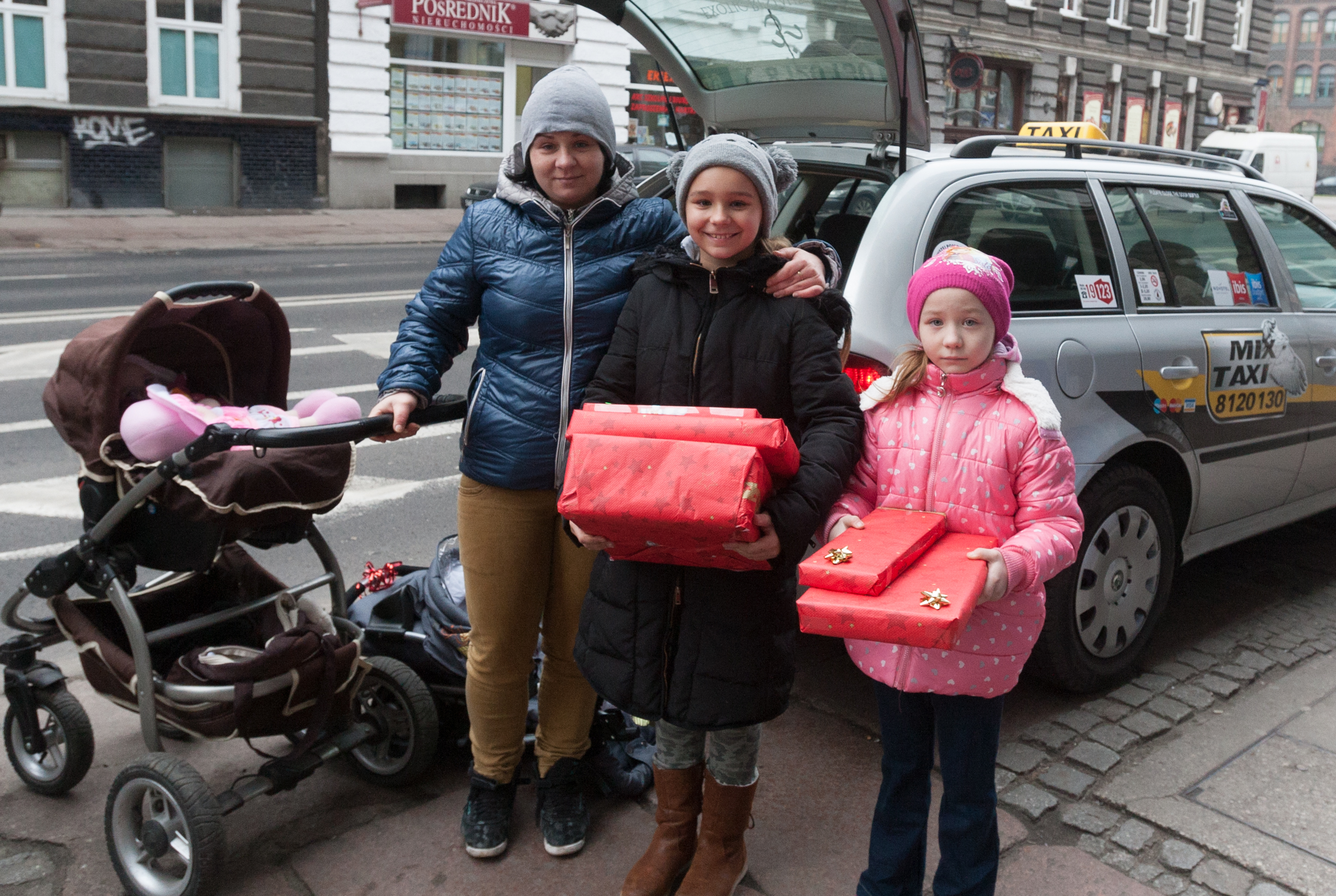 Efekt zbiórki był imponujący. W przedświąteczny czwartek pracownicy Mix Taxi spotkali się z panią Michaliną i jej córkami: Amelką, Zuzanna i Jagodą. Mały podarek, który im przekazali to...dwa pełne po dach samochody prezentów, wartości kilku tysięcy złotych! Od żywności i artykułów higienicznych, po rzeczy potrzebne do wyposażenia domu i oczywiście piękne zabawki dla dzieci, o których dziewczynki marzyły. Był nawet nowy wózek dla najmłodszej córki pani Michaliny.