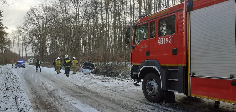 Przed godziną 10 w miejscowości Gostomin samochód osobowy wypadł z drogi i uderzył w drzewo. Na miejscu interweniowali strażacy z OSP Radowo Małe, JRG Łobez, policja i pogotowie ratunkowe.