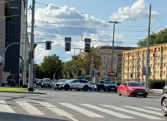 Najpierw miejski autobus zderzył się z samochodem osobowym w ciągu al. Wyzwolenia. Niedługo potem kolejna kolizja, tym razem z udziałem dwóch samochodów osobowych, wydarzyła się w rejonie wlotu ul. Piłsudskiego. Oba zdarzenia spowodowały utrudnienia w przejeździe przez pl. Rodła.