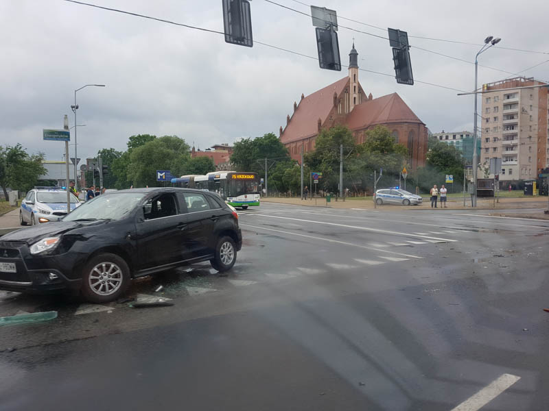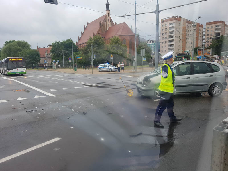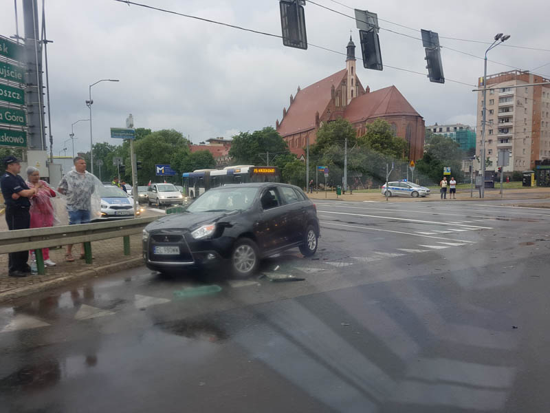Poszkodowane były dwie osoby. Pomocy udzielili ratownicy medyczni. Od razu utworzył się korek. Policja wskazuje objazd Trasą Zamkową.