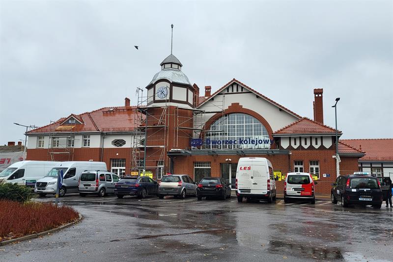 Wciąż trwa remont kołobrzeskiego dworca kolejowego. Przebudowywane są nie tylko wnętrza obiektu, ale również jego zewnętrzna część. Całość ma wyglądać tak jak w okresie przedwojennym. Zauważalnej zmianie uległa wieża zegarowa, na której pojawił się oryginalnie wyglądający czasomierz. Z okalających konstrukcję rusztowań zniknęły już siatki zabezpieczające, co sprawia, że wieżę można podziwiać niemal w pełnej okazałości. Inwestycja, która w sumie pochłonie 26 mln zł, zakończy się jeszcze w tym roku. ©℗